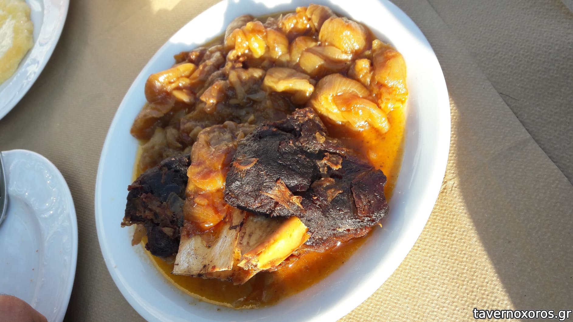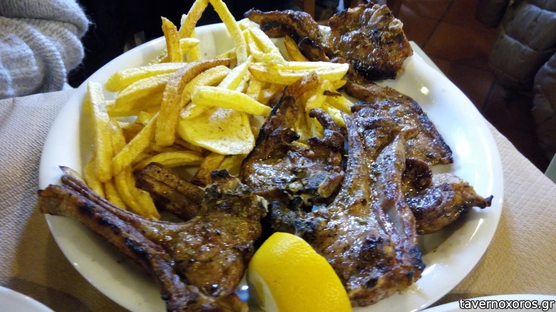 φασόλια με χόρτα, χοιρινό πρασοσέλινο, παιδάκια, πατάτες τηγανιτές - πολύ καλά