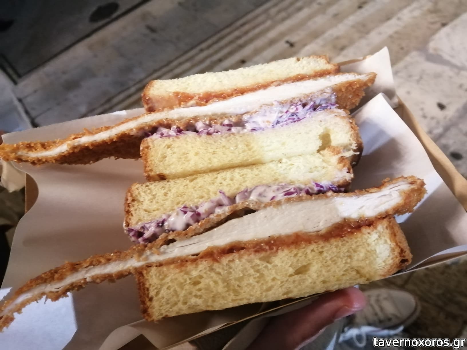 Katsu sando (chicken katsu/coleslaw kankiofoles/tomato cutney/ajo blanco)