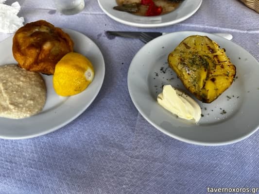 2ο πιάτο: μπακαλιάρος σκορδαλιά (μπαρούτι), πατάτα ψητή