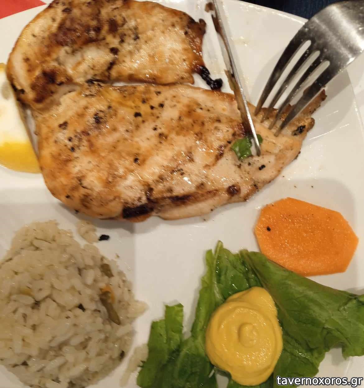 Επίσκεψη στο πλαίσιο του «χορού» ενός πολιτιστικού συλλόγου με αγορά πρόσκλησης, προκαθορισμένο μενού, ζωντανή εκκωφαντική μουσική, λαχειοφόρο αγορά και τα συναφή... Μάρτιος 2023, παρέα 4 ατόμων, μας έφεραν μία σαλάτα με πρασινάδες, ένα πιατάκι με αλοιφές, μία πατάτες τηγανητές, ένα ψητό ανά άτομο (κοτόπουλο στήθος ή μπριζόλα χοιρινή ή μπιφτέκια, βλ. φωτο), κρασί χύμα, αναψυκτικά, νερό. Δεν μείναμε καθόλου ικανοποιημένοι από ό,τι φάγαμε.