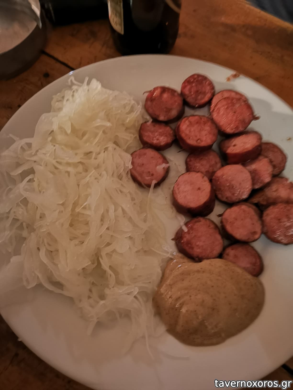 δοκιμασα λουκανικο(4.00€) με τηγανητες πατατες(2.00) με την ταταρ σως(1.00€). ειναι τηγανητα μεν, νοστιμα δε.