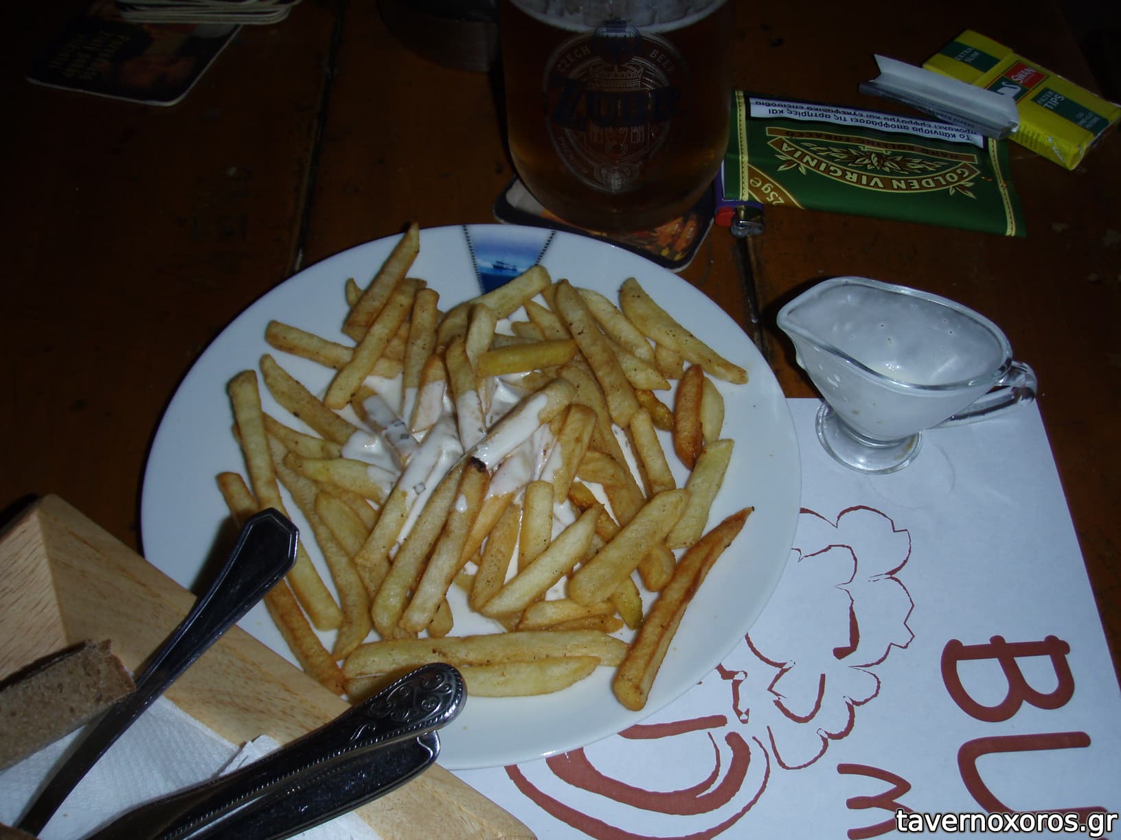 Οι πολύ νόστιμες τηγανητές πατάτες (1,6€) με έξτρα tartar sauce (1€)
