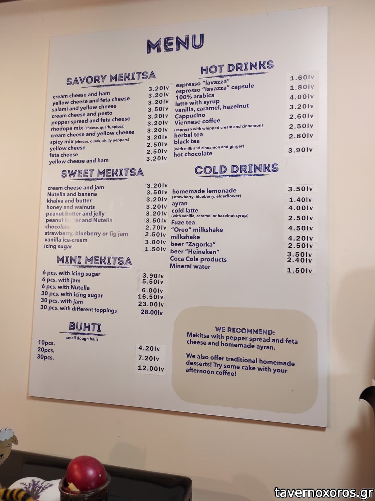 Σέρβις ευγενικό και αποτελεσματικό. Ολα φτιάχνονται μετά την παραγγελία όποτε είναι φρέσκα και ζεστά. Mekitsi με φυστικοβουτυρο και μαρμελάδα πολύ καλό στα 1,6 ευρώ. Mekitsi με άχνη ζάχαρη πολύ καλό στα 0,90 ευρώ. Mekitsi με σαλάμι και κασέρι πολύ καλό στα 1,6 ευρώ. Μου άρεσε και το προτείνω.