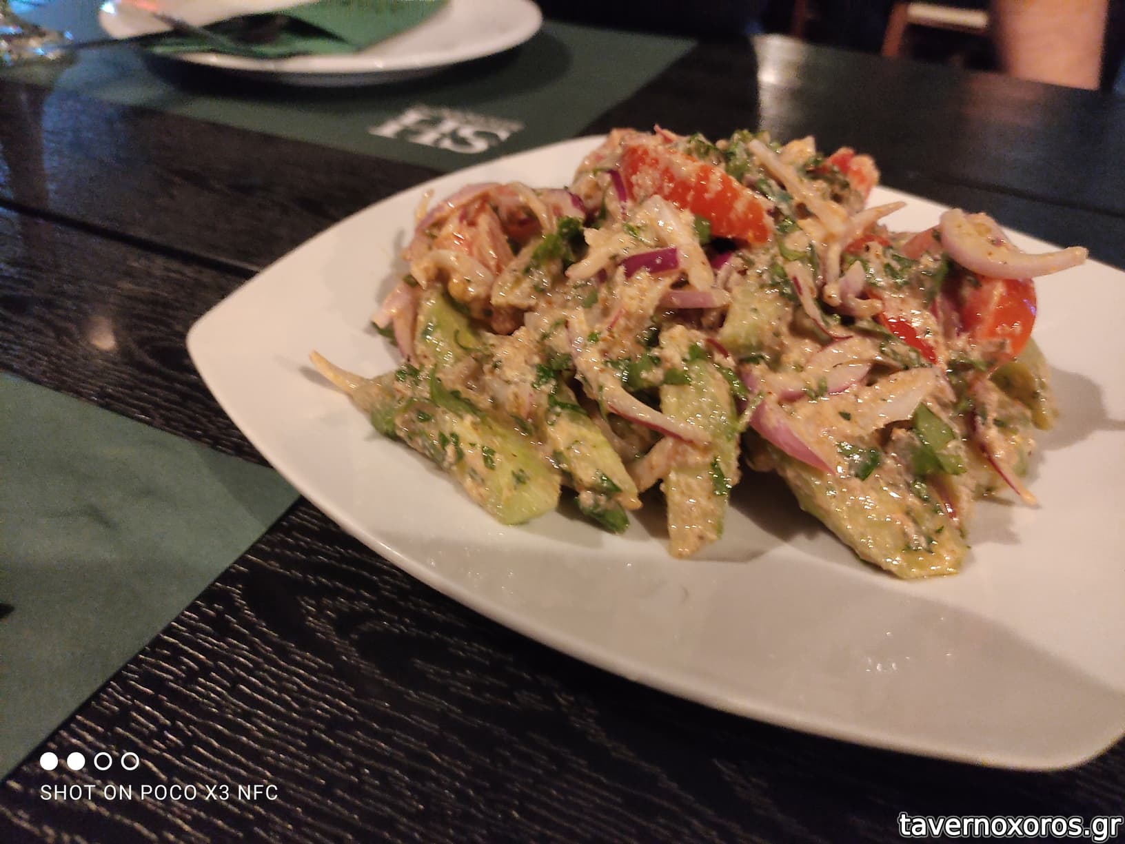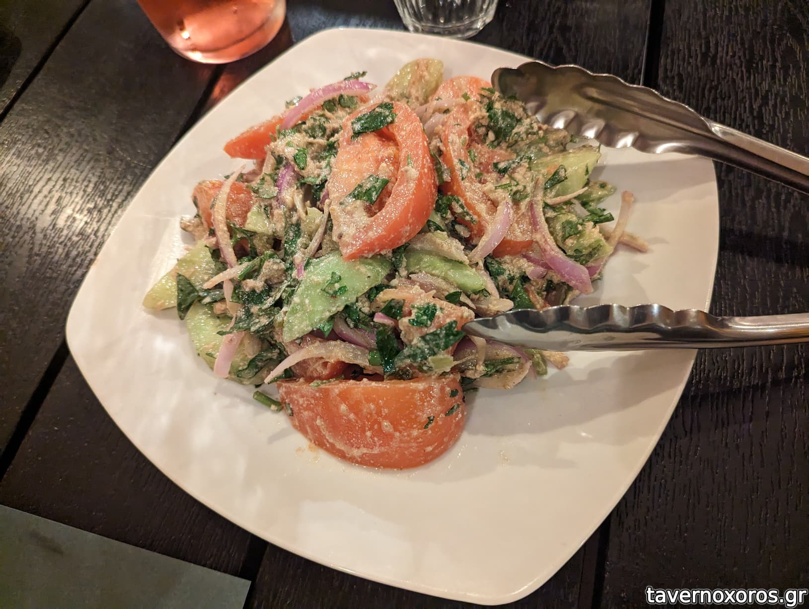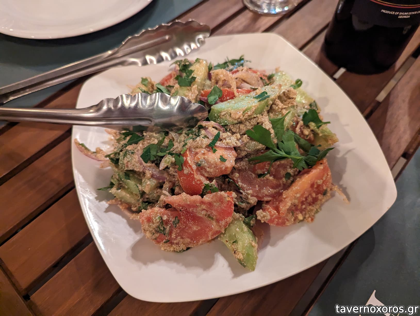 "Γεωργιανή σαλάτα" (καλή, είναι αγγουροντομάτα με σάλτσα καρυδιού)