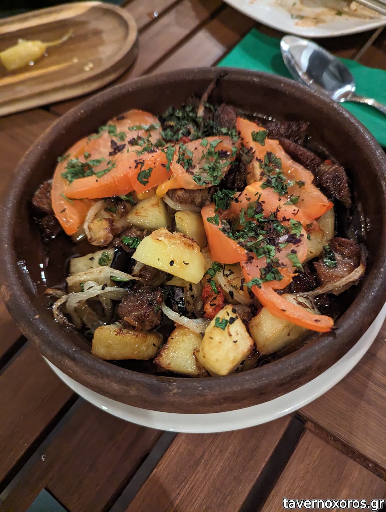 Chanakhi/Τσανάχι: μοσχάρι με τηγανητά λαχανικά (καλό)