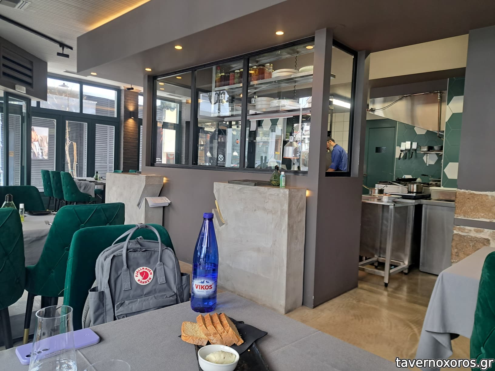 Θέα στην κουζίνα μέσα από το μαγαζί