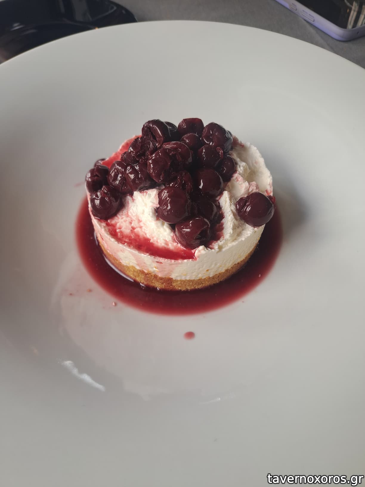 Κέρασμα τσίζκεικ σε κανονική μερίδα, μια χαρά. Πολύ θρυμματίσιμο το μπισκότο μόνο.