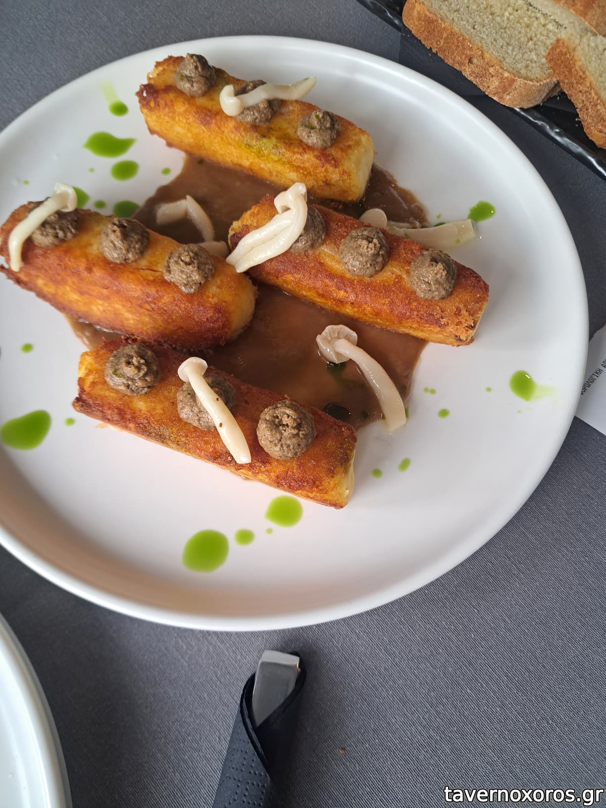 Παβέ πατάτας με πατέ μανιταριών, πολύ καλό.