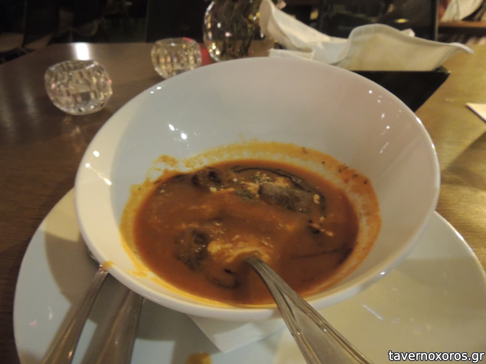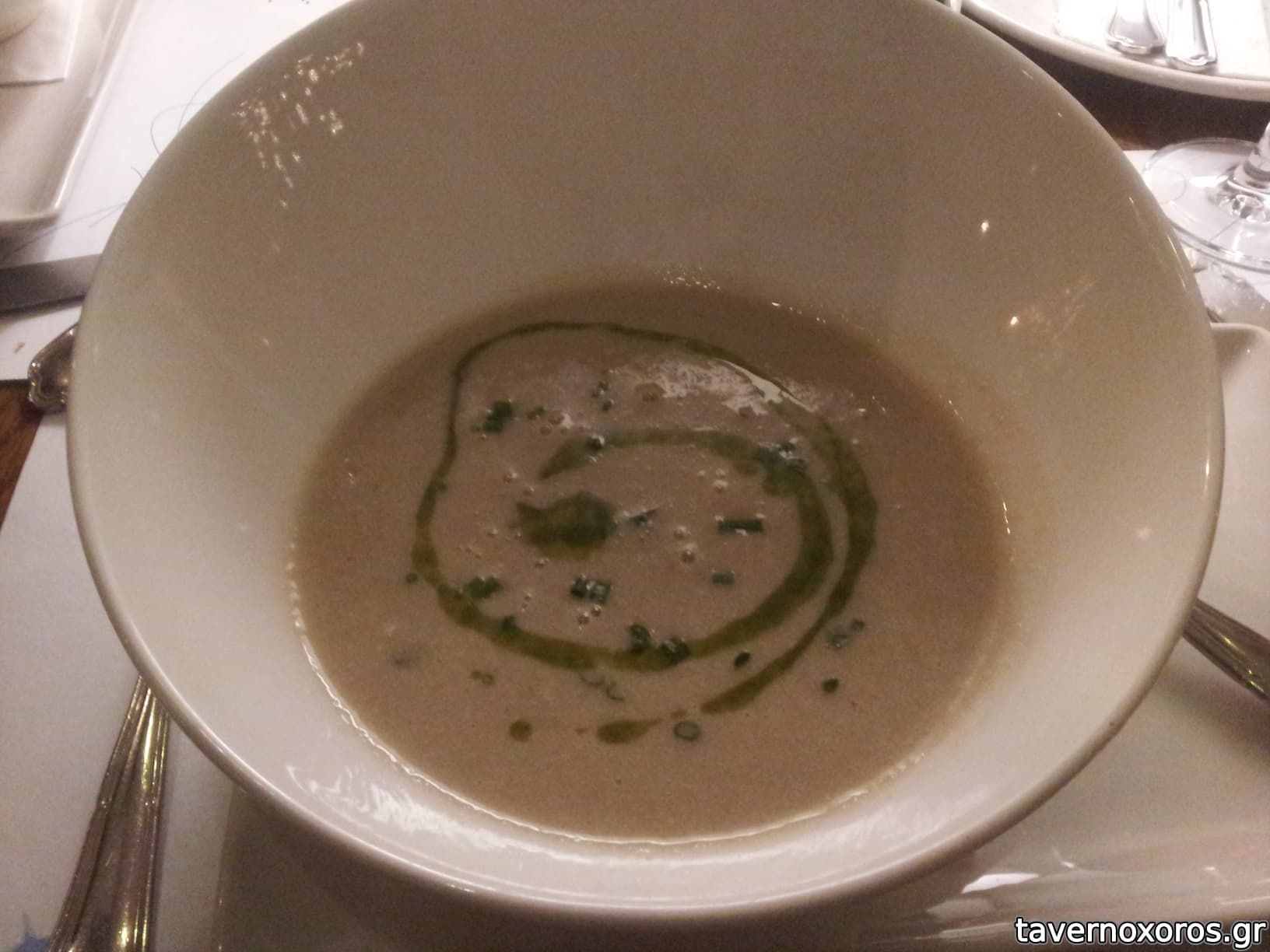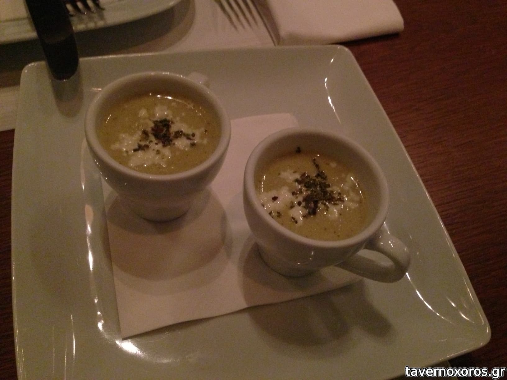 Καλωσορισμα με φλυτζανακια απο βελουτε (ντοματοσουπα/χορτοσουπα), με φρεσκοψημενα ψωμακια. Πολυ νοστιμος συνδυασμος