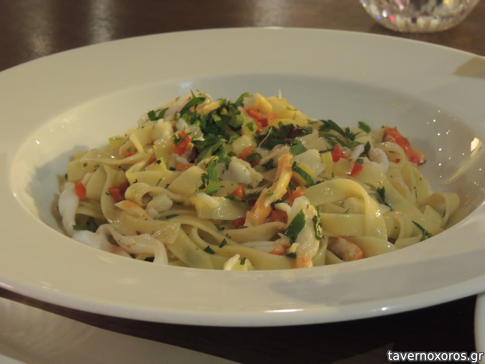 Ταλιατέλες με βασιλικό καβούρι, καλαμάρι και τσίλι