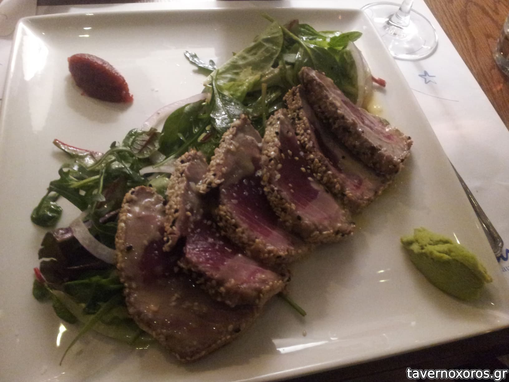 Φιλέτο τόνου με wasabi και πράσινη σαλάτα