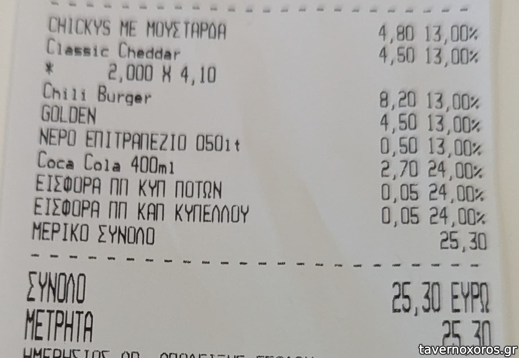 Απόδειξη (πρώτα φορά βλέπω περιβαλλοντικό τέλος για το ποτήρι της κοκά κόλα που σερβίρουν στο σαλόνι, μάλιστα χρέωσαν ξεχωριστά το καπάκι!)