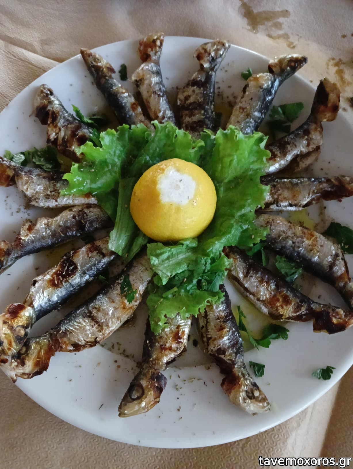 Σαρδέλες ψητές στα κάρβουνα (επαγγελματική εκτέλεση με μέτριες γευστικά σαρδέλες)