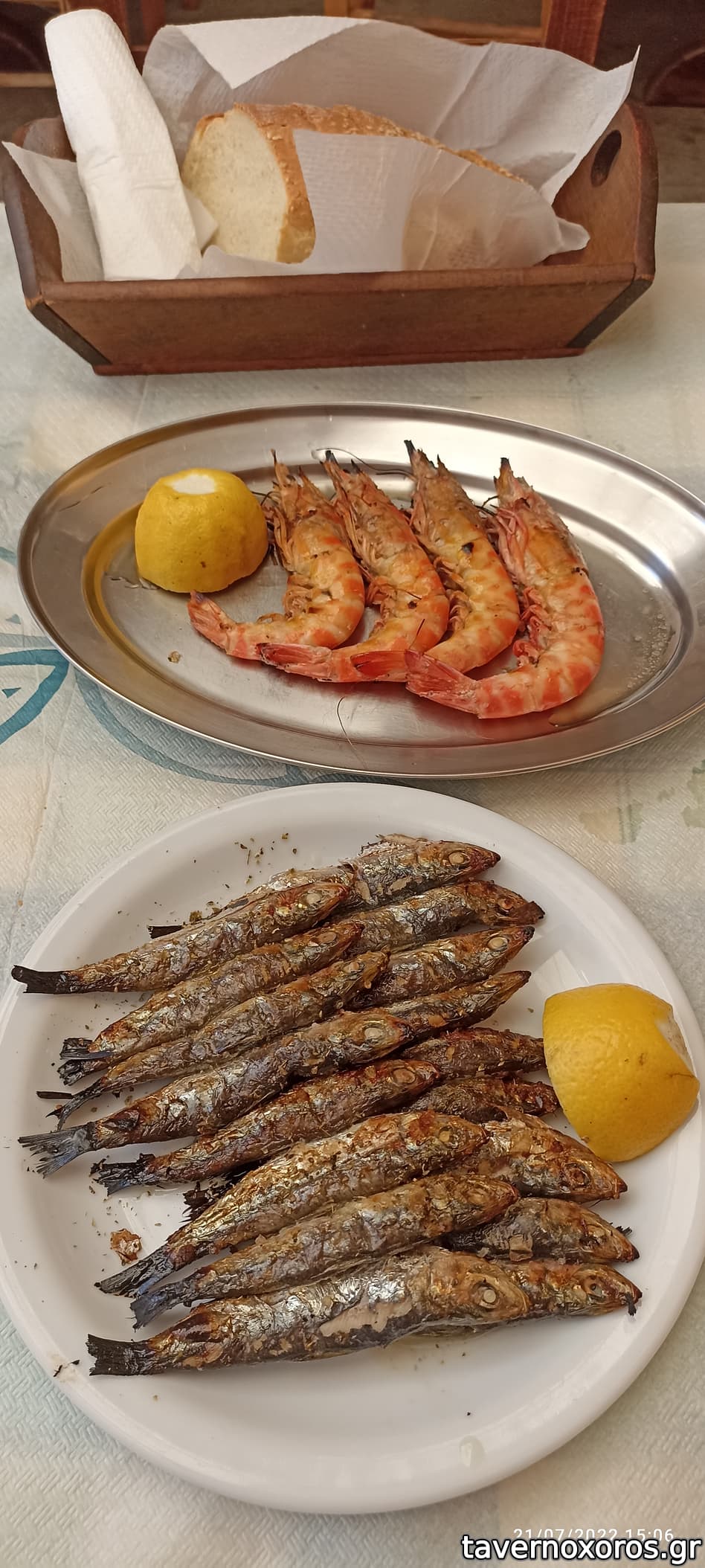 Πηρα το ιδια ακριβως που πήρα και το βράδυ στον παραδιπλανό Αμβρόσιο (γαρίδες και σαρδέλες). Θα πω οτι οι μερίδες γενικά στην Πρέβεζα είναι γενναιόδωρες, αλλά καλυτερα δείτε μόνοι σας τις φωτογραφίες, σημειώνοντας όμως οτι οι γαρίδες που βλέπετε είναι μισή μερίδα.