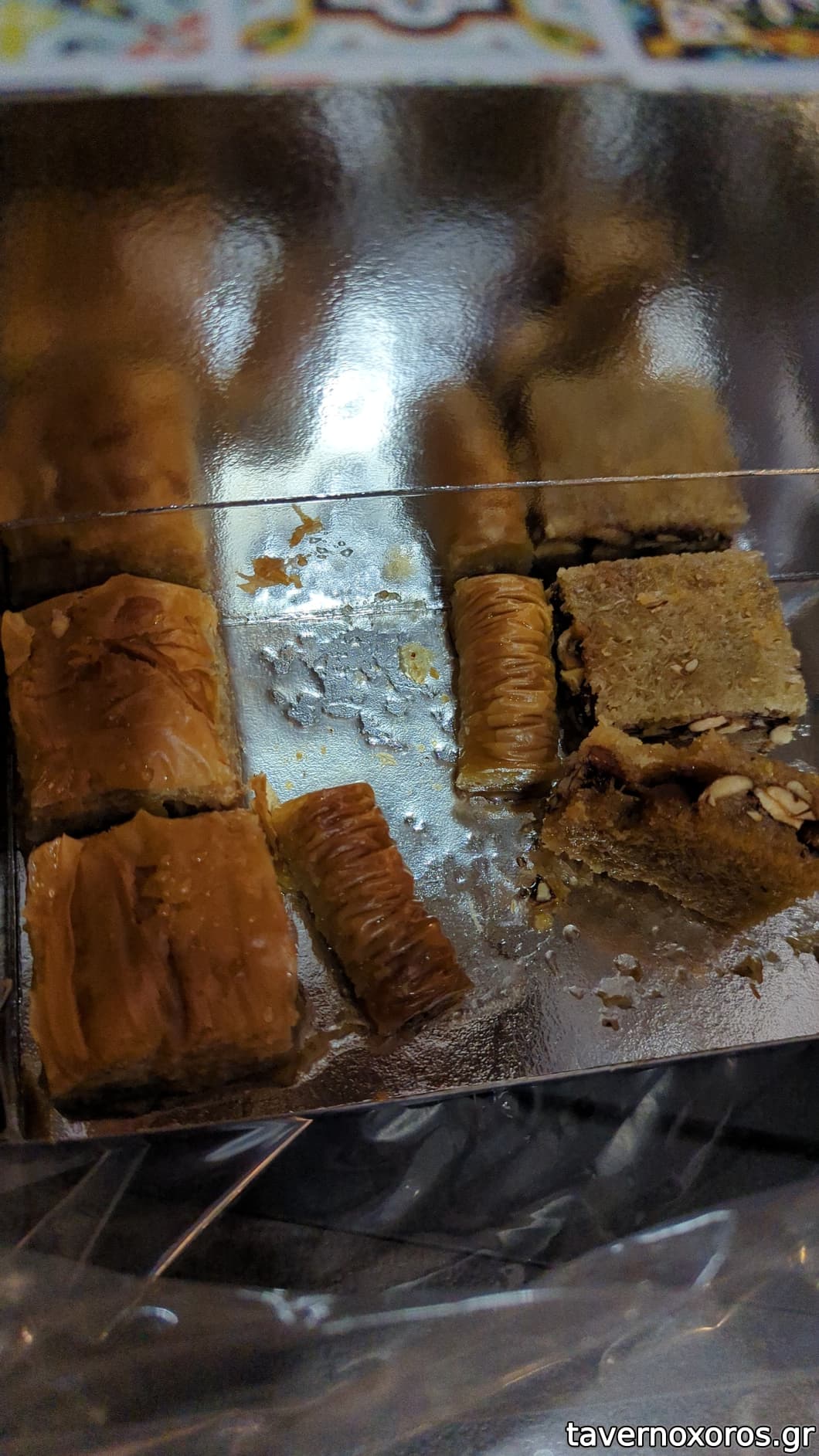 Μαγαζί που εξειδικεύεται στα σιροπιαστά (αν κι είχε στη βιτρίνα κάποιες τάρτες με φρούτα, προφιτερόλ και εκμέκ) και μοσχοβολάει βούτυρο. Είχε διαφορετικές επιλογές σε μπακλαβά (καρύδι, καρύδι-πορτοκάλι, φυστίκι Αιγίνης και σοκολάτα). Δοκίμασα αρύδι και καρύδι-πορτοκάλι, αμφότεροι με ωραίο φύλλο και τόσο σιρόπιασμα, όσο χρειαζόταν. Στις λεζάντες έχω και κάποιες παραπάνω λεπτομέρειες. Πρόσημο θετικόν και προτείνεται