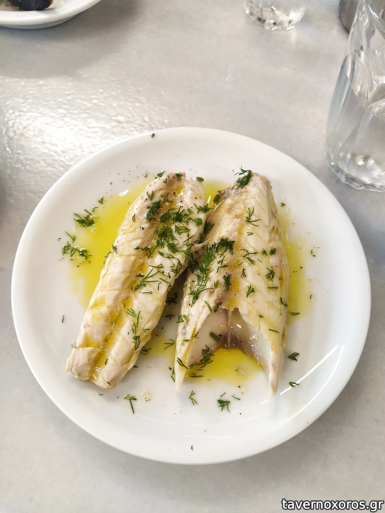 2η: Ταραμάς λευκός (άψογος), και ψαράκι με λευκή σως (καλό)