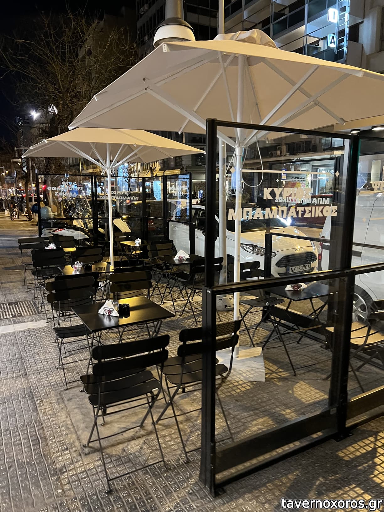 Έχει τραπέζια να κάτσει στο πεζοδρόμιο.