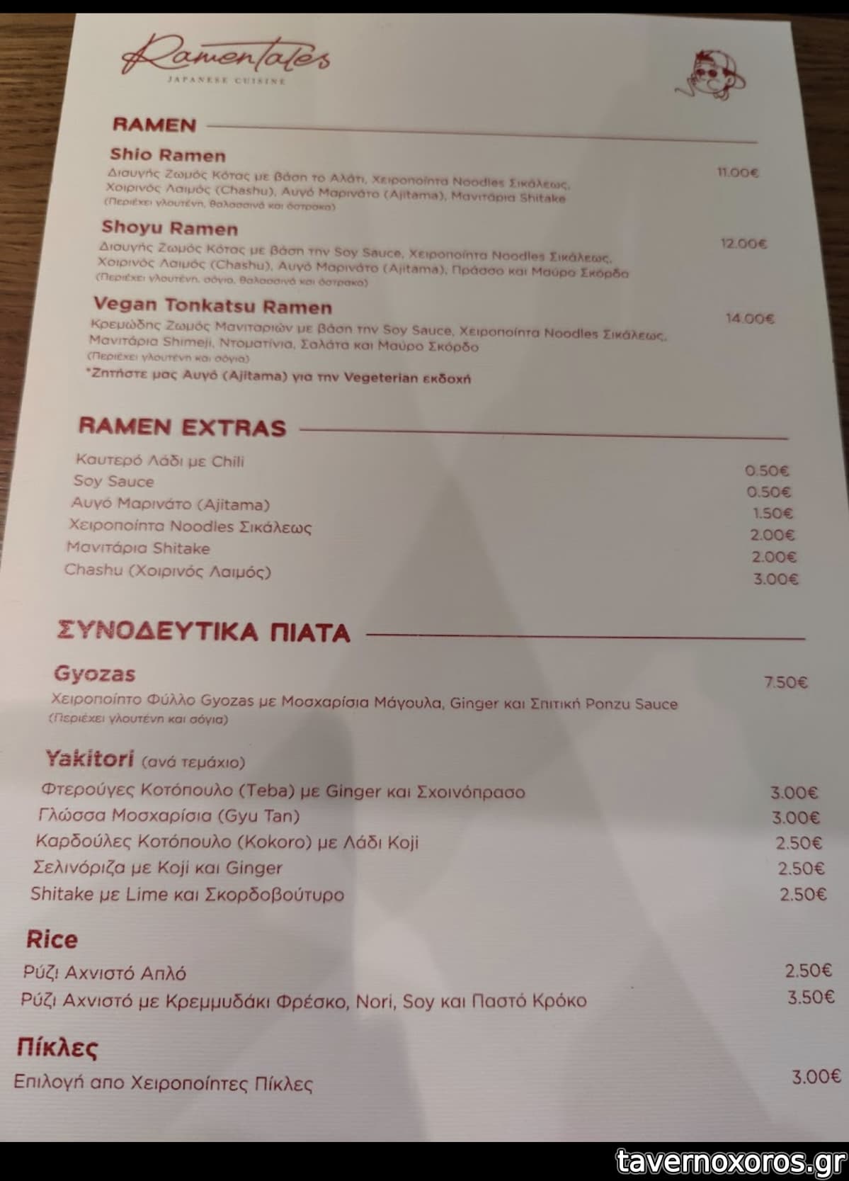 Τιμές για τα ραμεν νορμαλ γιατί είχαν κρέας, τα ορεκτικά χωρίς λόγο ακριβά, ή μάλλον μικρά.
