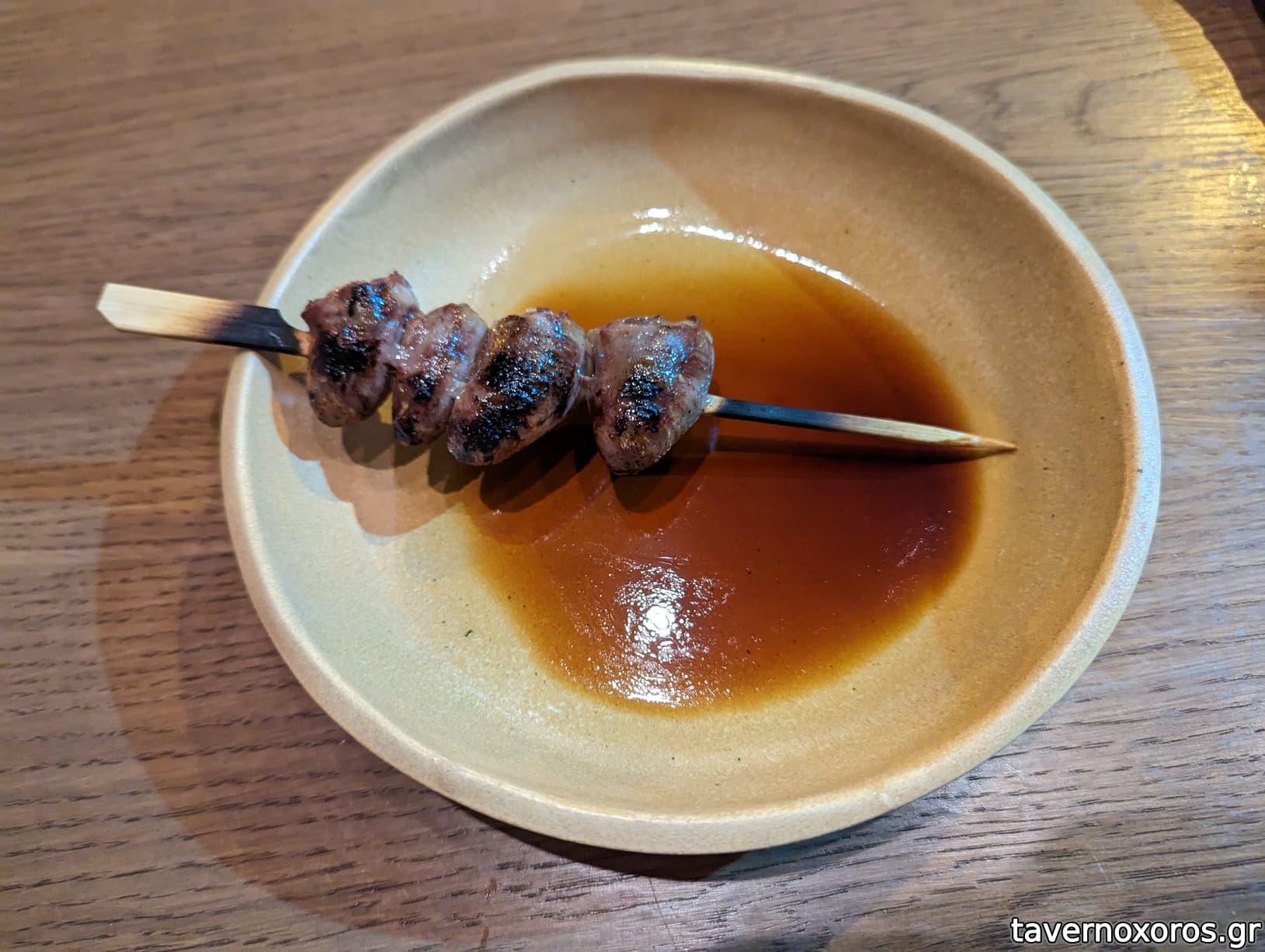 Yakitori "Γλώσσα Μοσχαρίια Gyu Tan με Miso και Beurre Noisette" (εξαιρετικό)