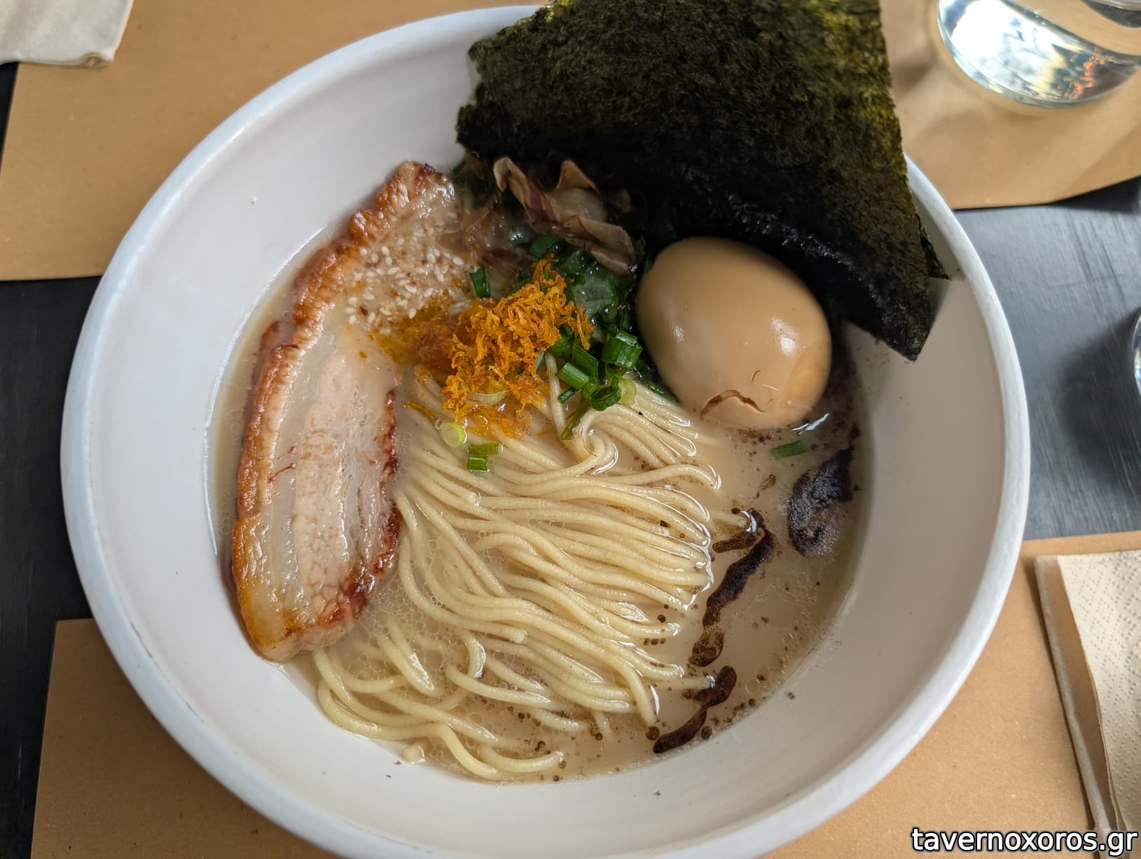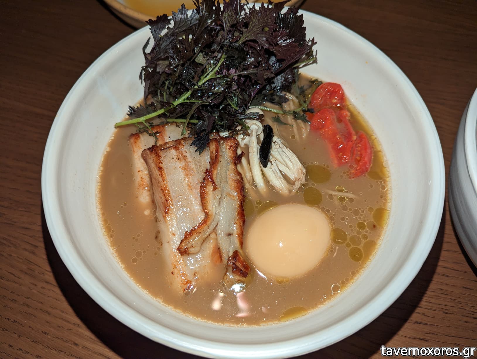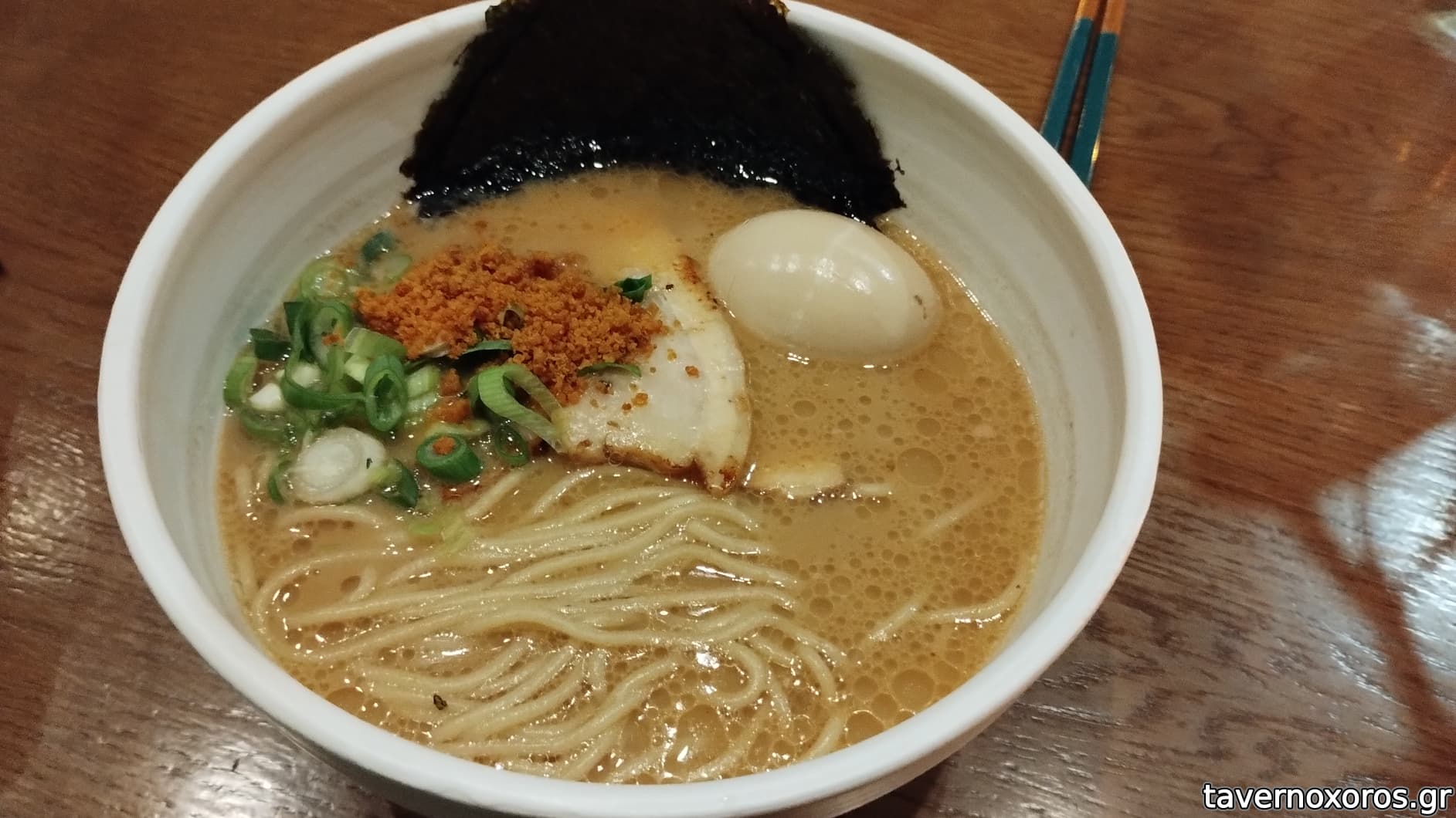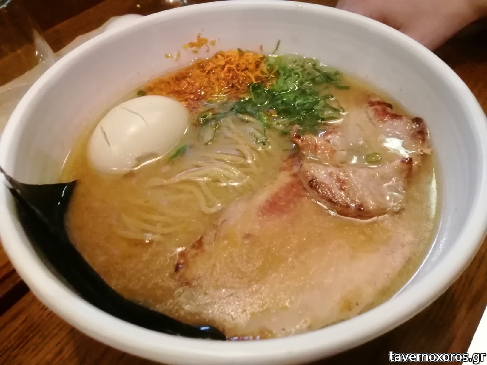 Tonkotsu ramen (ζωμός με miso, οκ, καλός. Δε με τρέλανε)