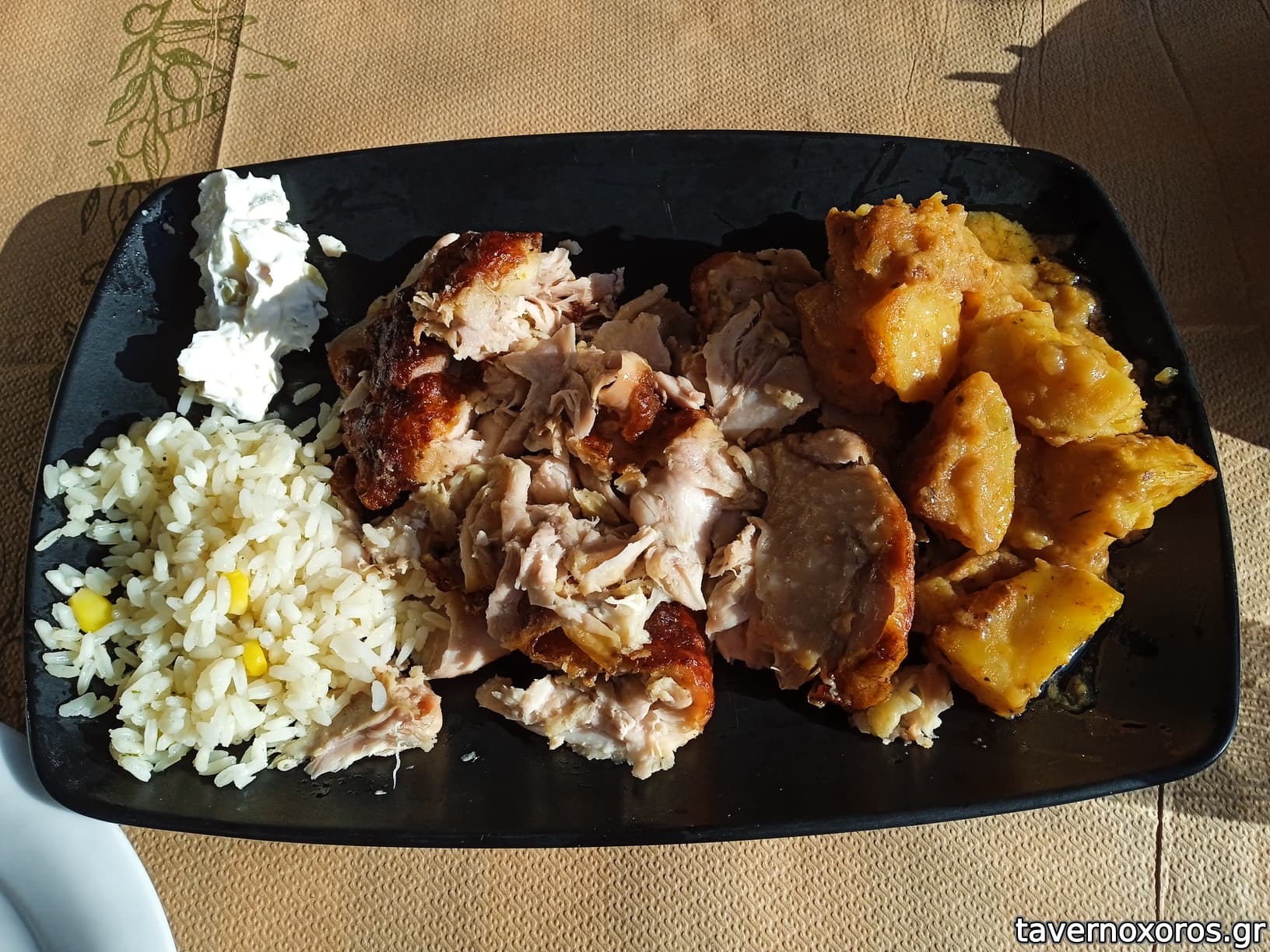 Κοντοσούβλι κοτόπουλο και χοιρινό αρκετά καλά (το δεύτερο, προσωπικά, μου άρεσε περισσότερο). Ζουμερά αμφότερα. Μου φάνηκε περίεργη η επιλογή της μεμβράνης για το τύλιγμα κατά το ψήσιμο, αλλά φαίνεται να δουλεύει.
