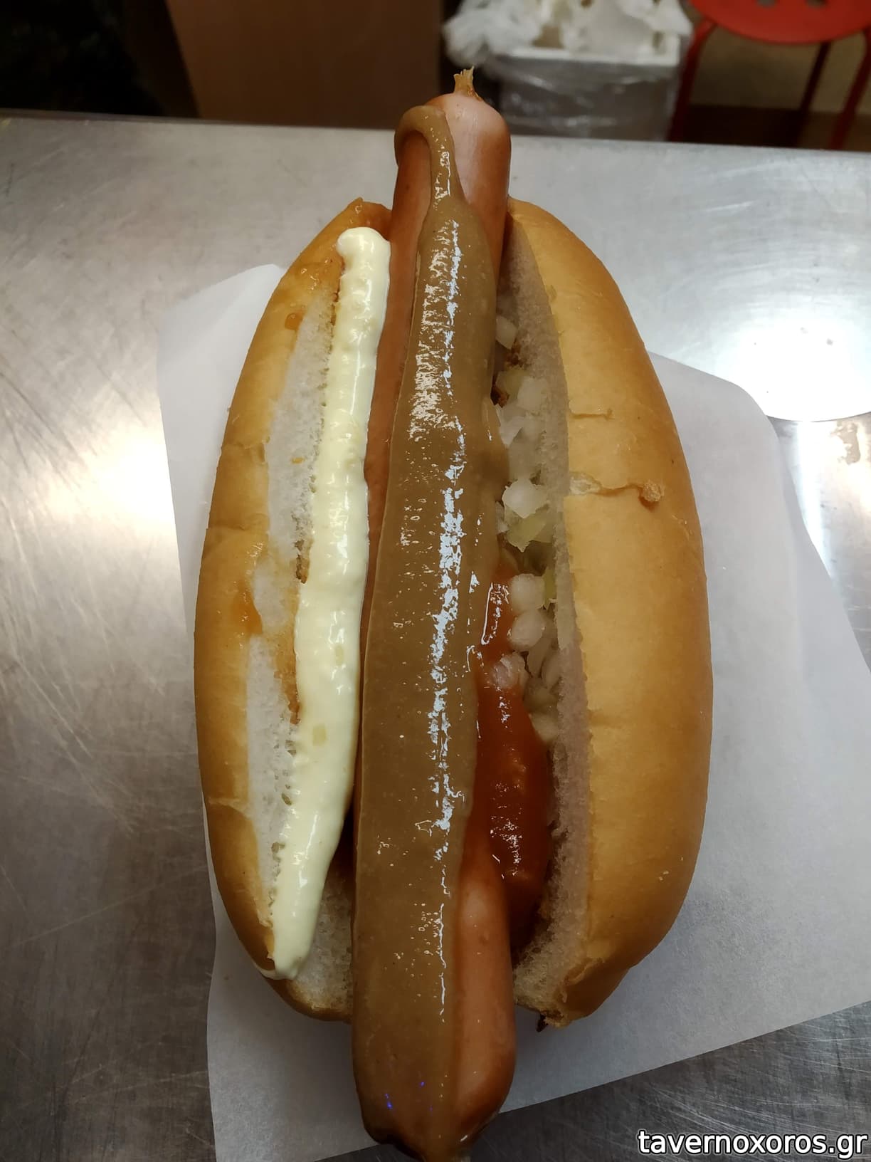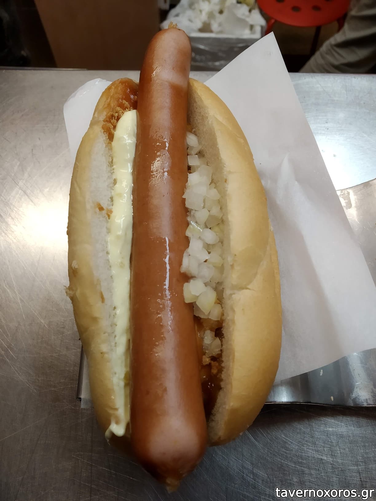 Pylsur Hot Dog με remοulade σως και τηγανητό κρεμμύδι (εξαιρετικό)