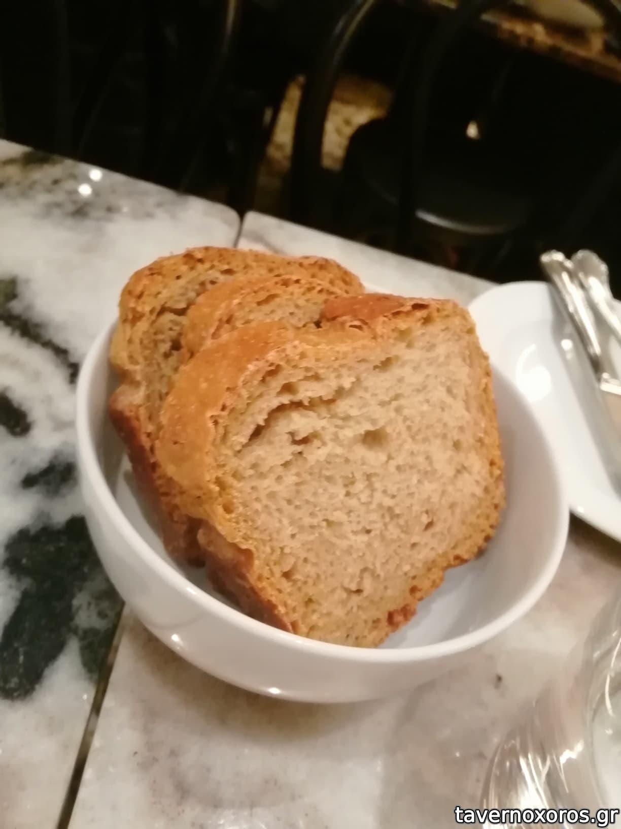 Με το φαγητό έρχονται προζυμένια ατομικά ψωμάκια (πολύ νόστιμα, ειδικά στις βούτες στο πρασοσέλινο), ενώ η βασική επιλογή για νερό είναι αυτή της βρύσης (στα θετικά).