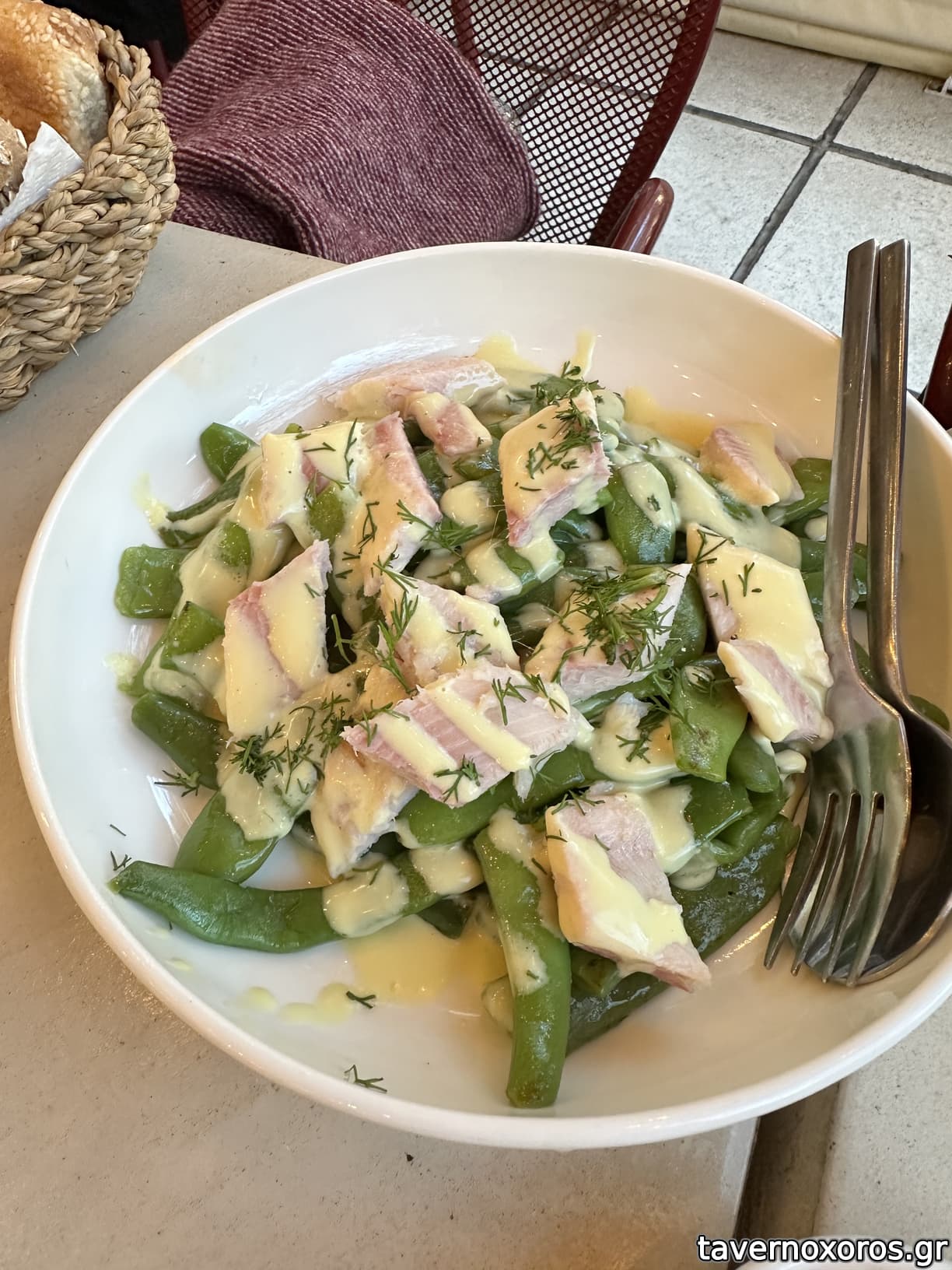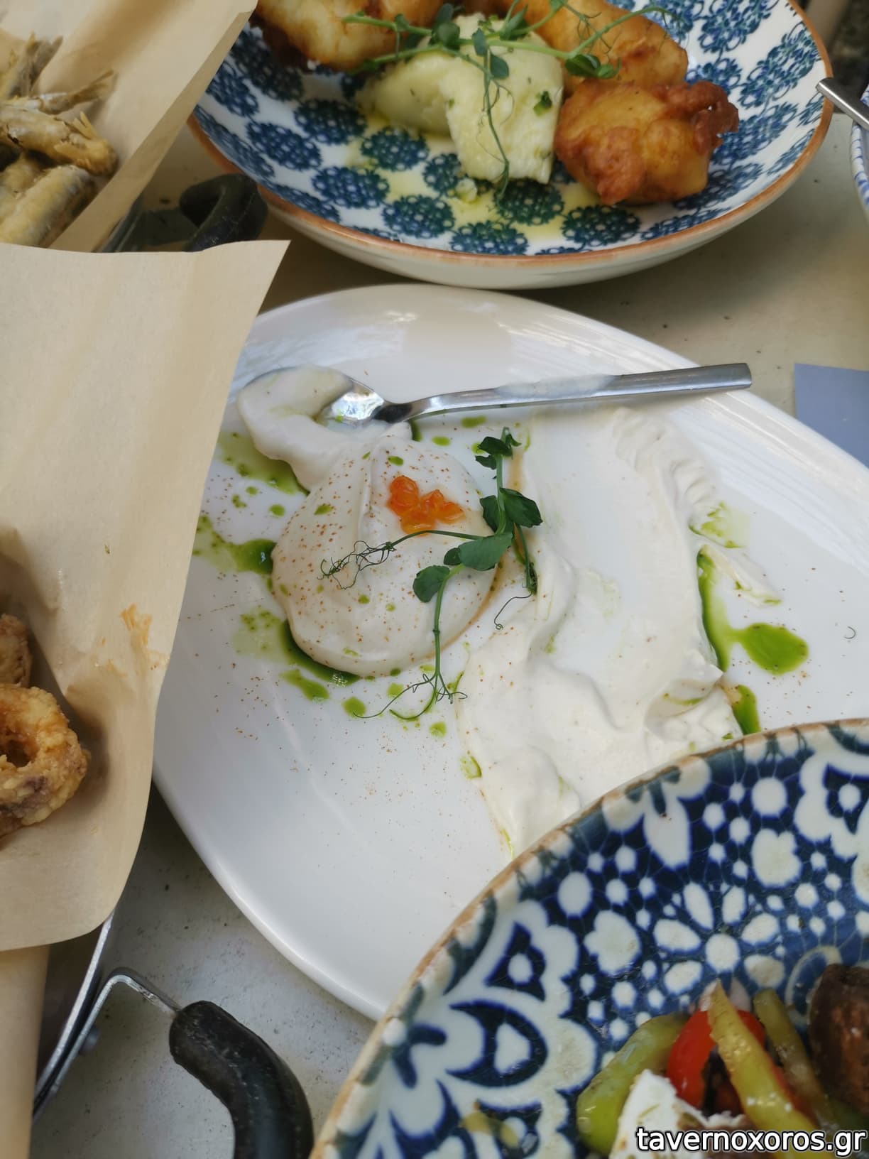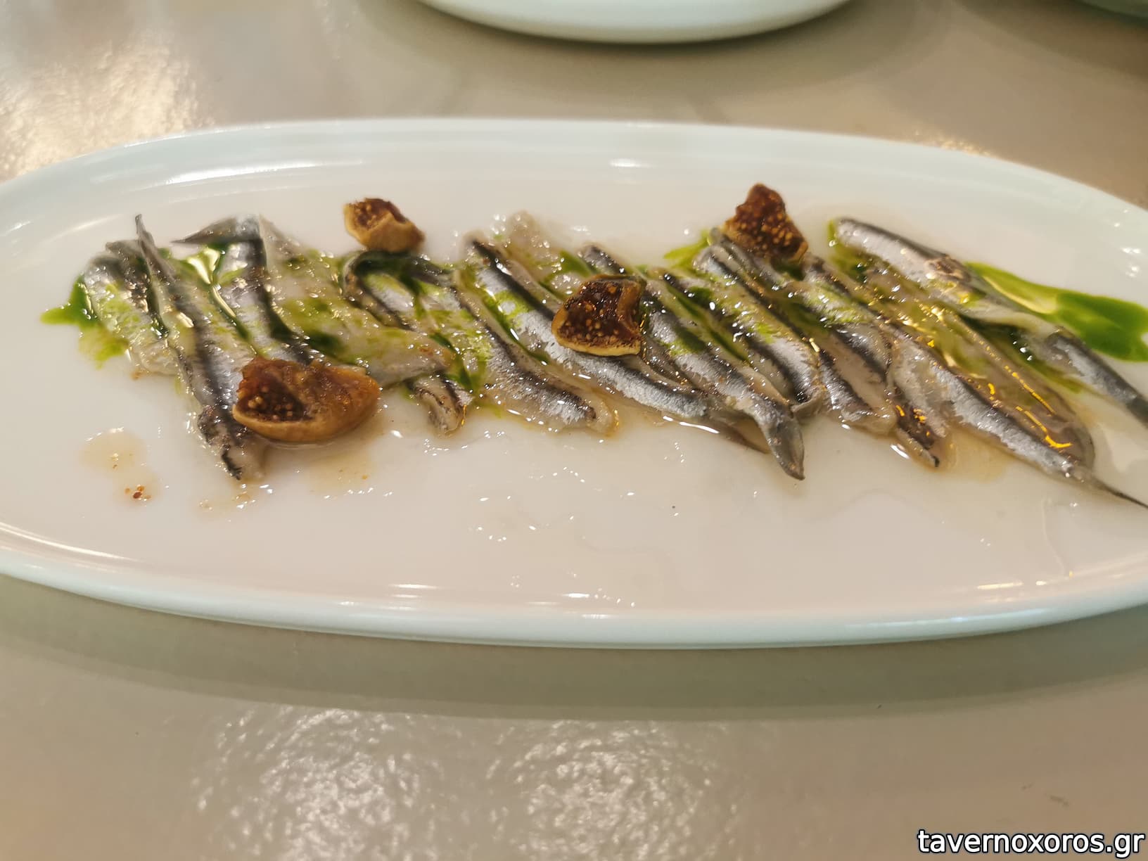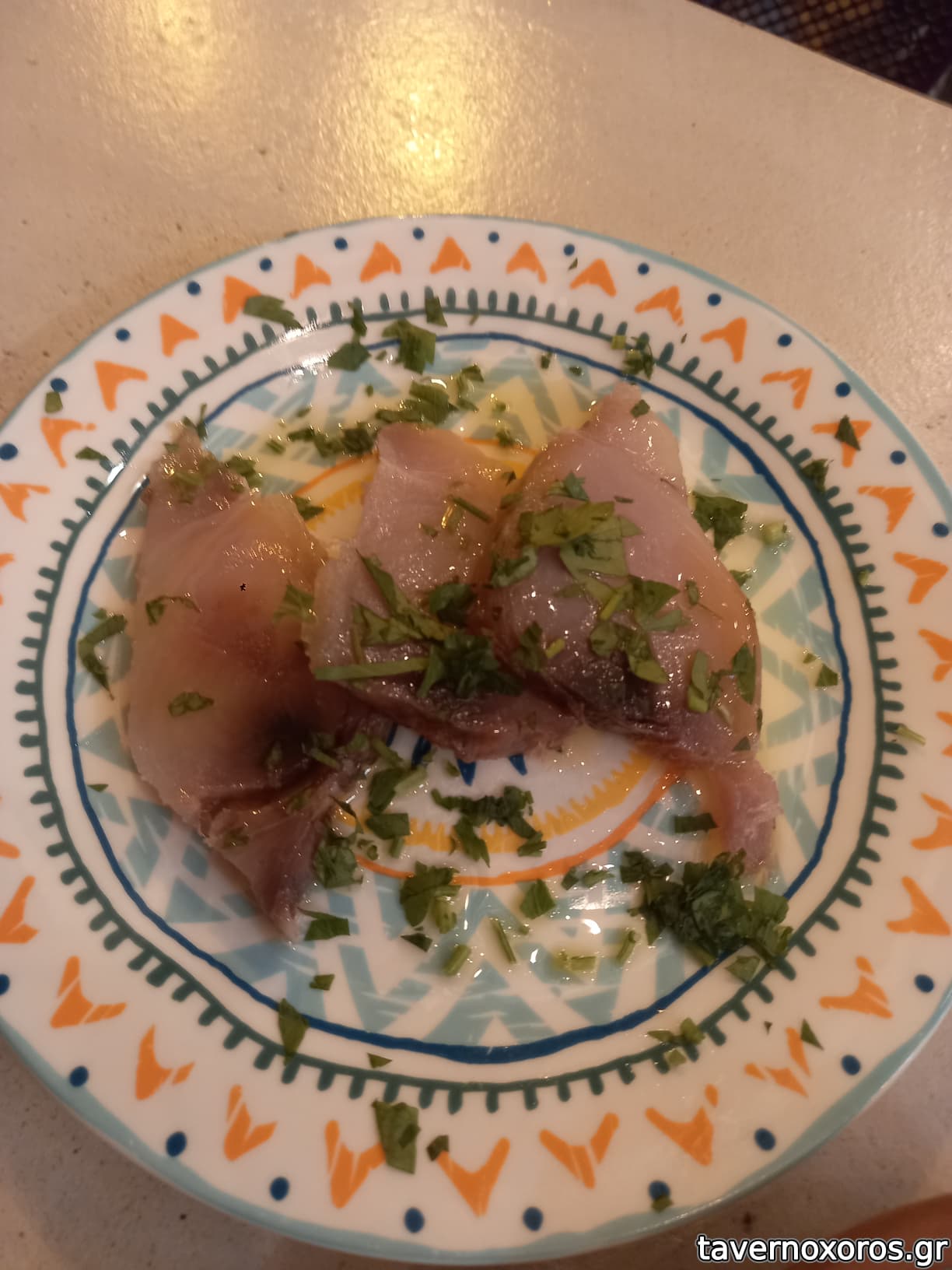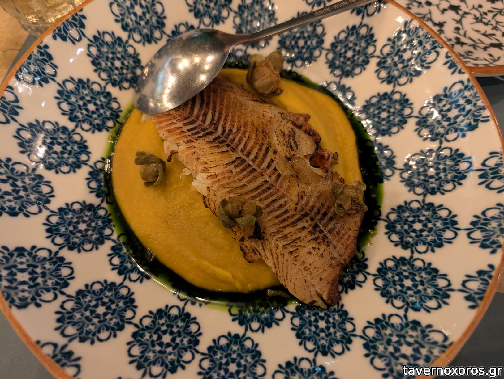 "Φάβα, πέστροφα καπνιστή, κάπαρη τηγανητή, λάδι μαϊντανού" (καλό, ωραία και η πέστροφα)