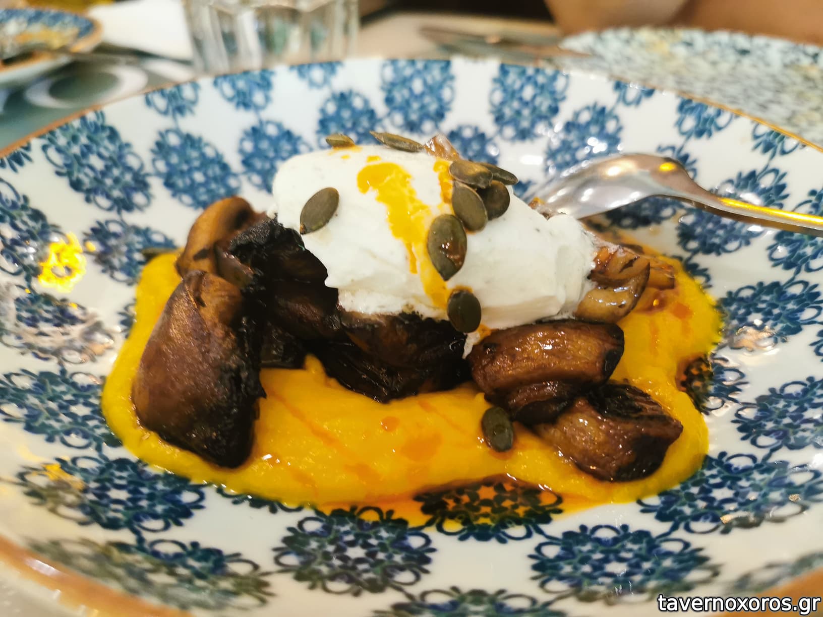Μανιτάρια σωτέ με πουρέ κολοκύθας (ο πουρές καλός)