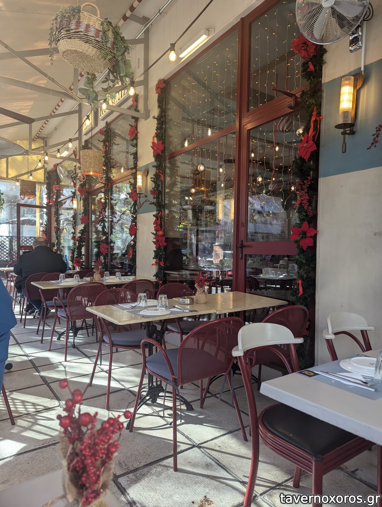 Καθίσαμε έξω, όμορφος χώρος. Έχει και μανιτάρια για τις κρύες ημέρες, αλλά και πλαστικά που κόβουν τον αέρα. Ωραία η τοποθεσία, γειτονιά, απέναντι από τη Βίλα Μπιάνκα.