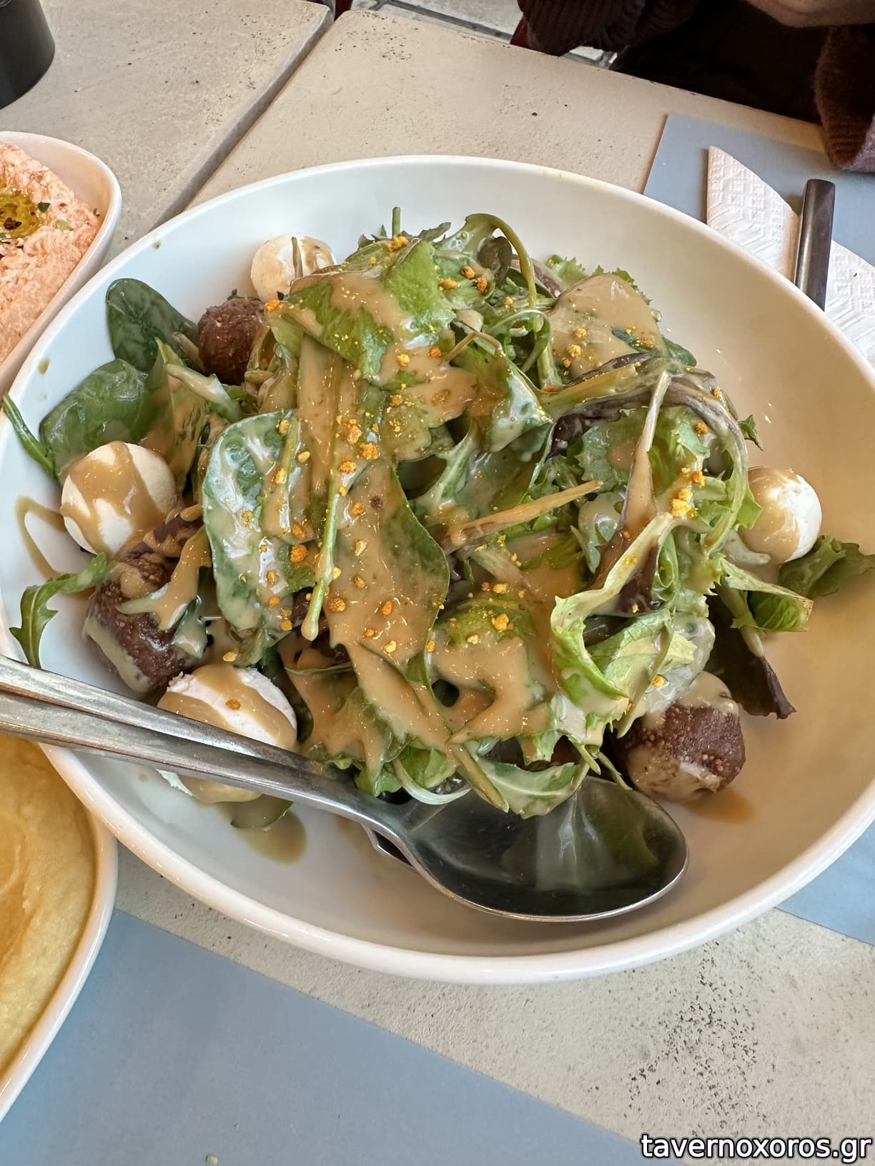 Πράσινη σαλάτα με συκομαΐδα και κατσικίσιο τυρι (οκ)