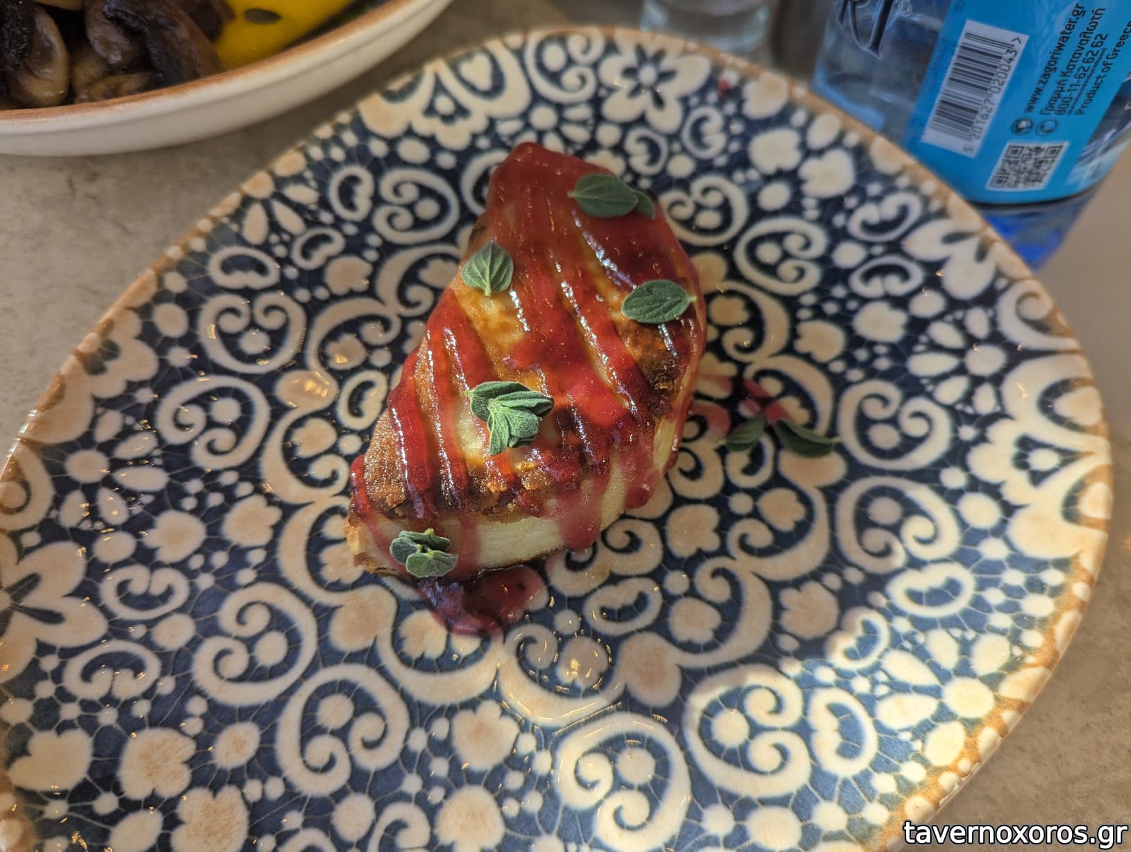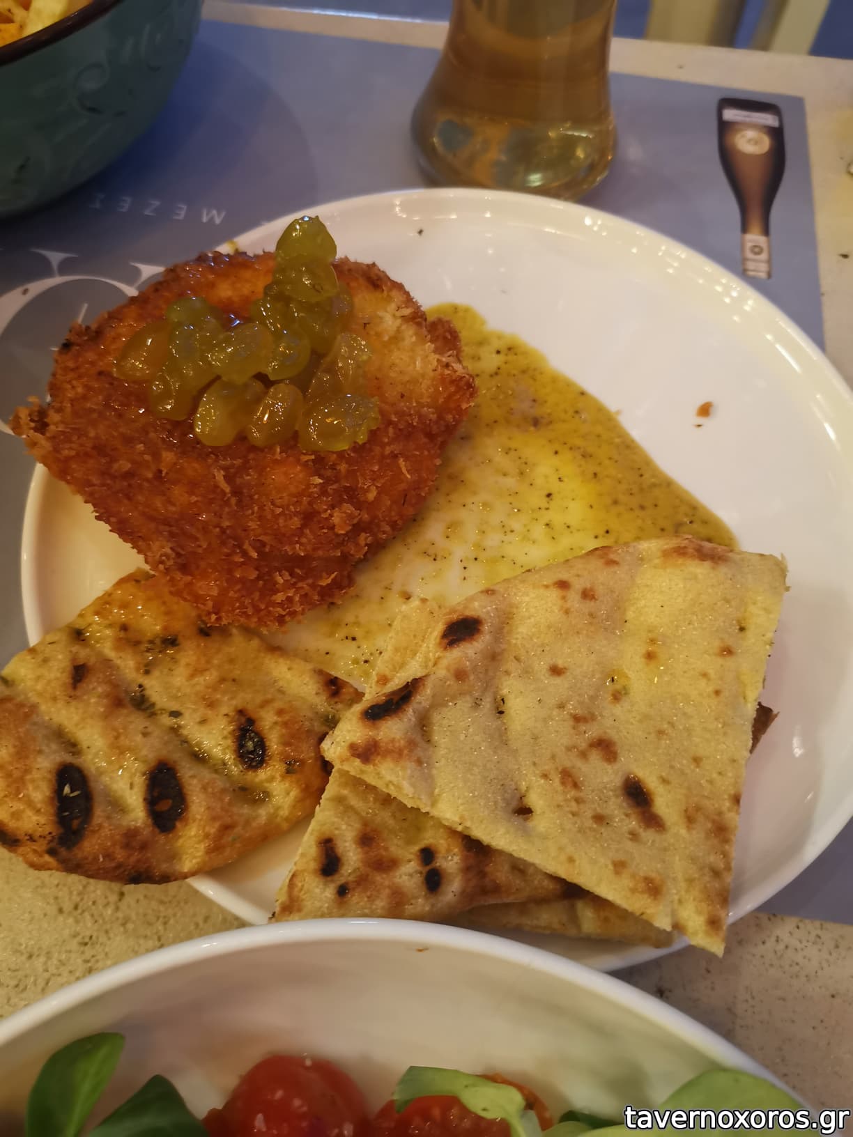 Κάποιο τηγανητό τυρί (δεν θυμάμαι ονομασία πιάτου) με μαρμελάδα (ok)
