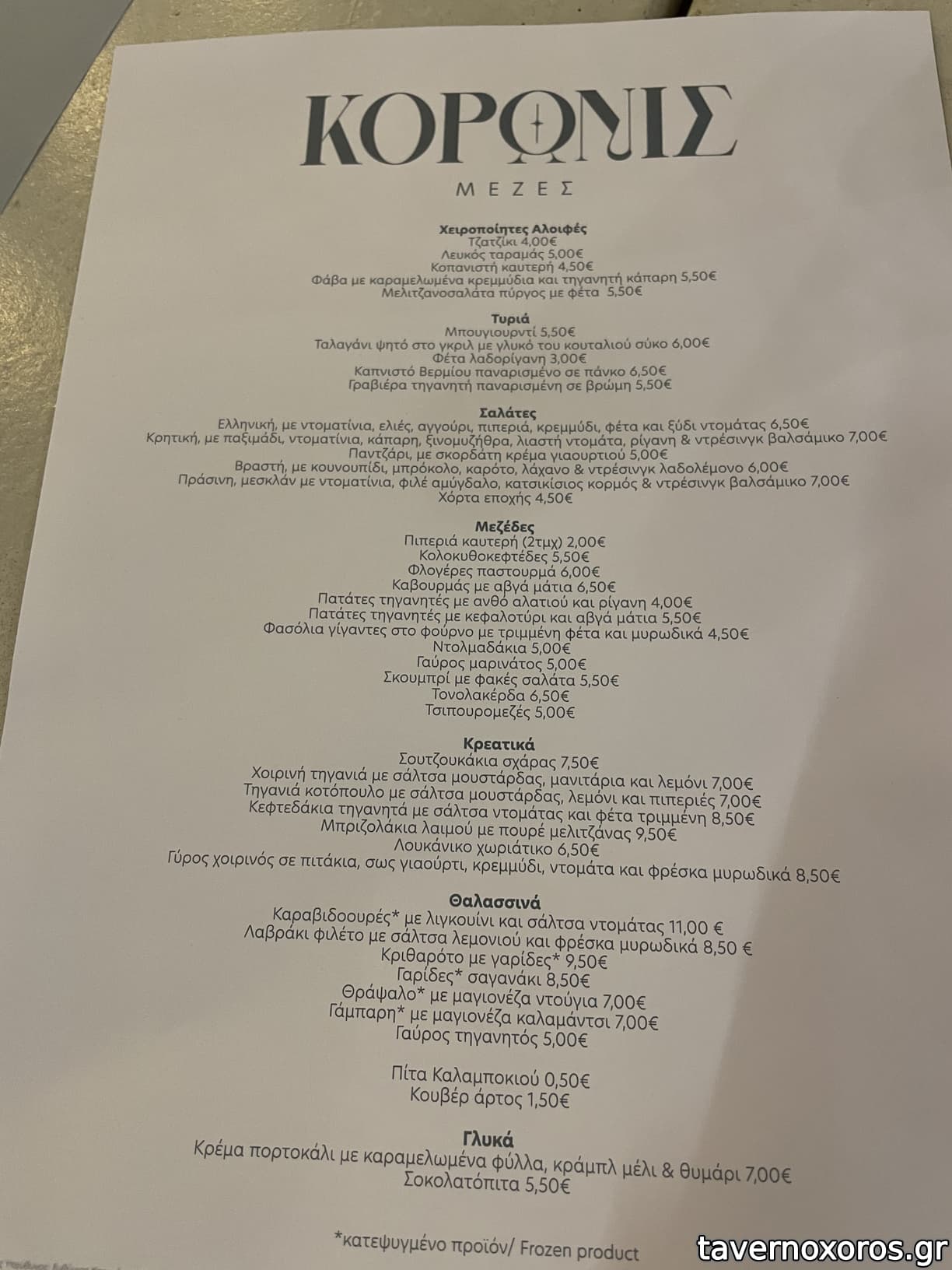 Στα του φαγητού, δοκιμάστηκαν τονολακέρδα (οκ), παστουρμαδοπιτάκια (καλά), κολοκυθοκεφτέδες (αδιάφοροι), καυτερή πιπεριά (καλή, έκαιγε πολύ), γαύρος τηγανητός (τη μια φορά καλός την άλλη όχι), σκουμπρί με φακές (οκ), ταμπουλέ (καλό), λαβράκι με σωτέ λαχανικά (καλό) και φρέσκο ψάρι που πήραμε τηγανητό τίμιο.