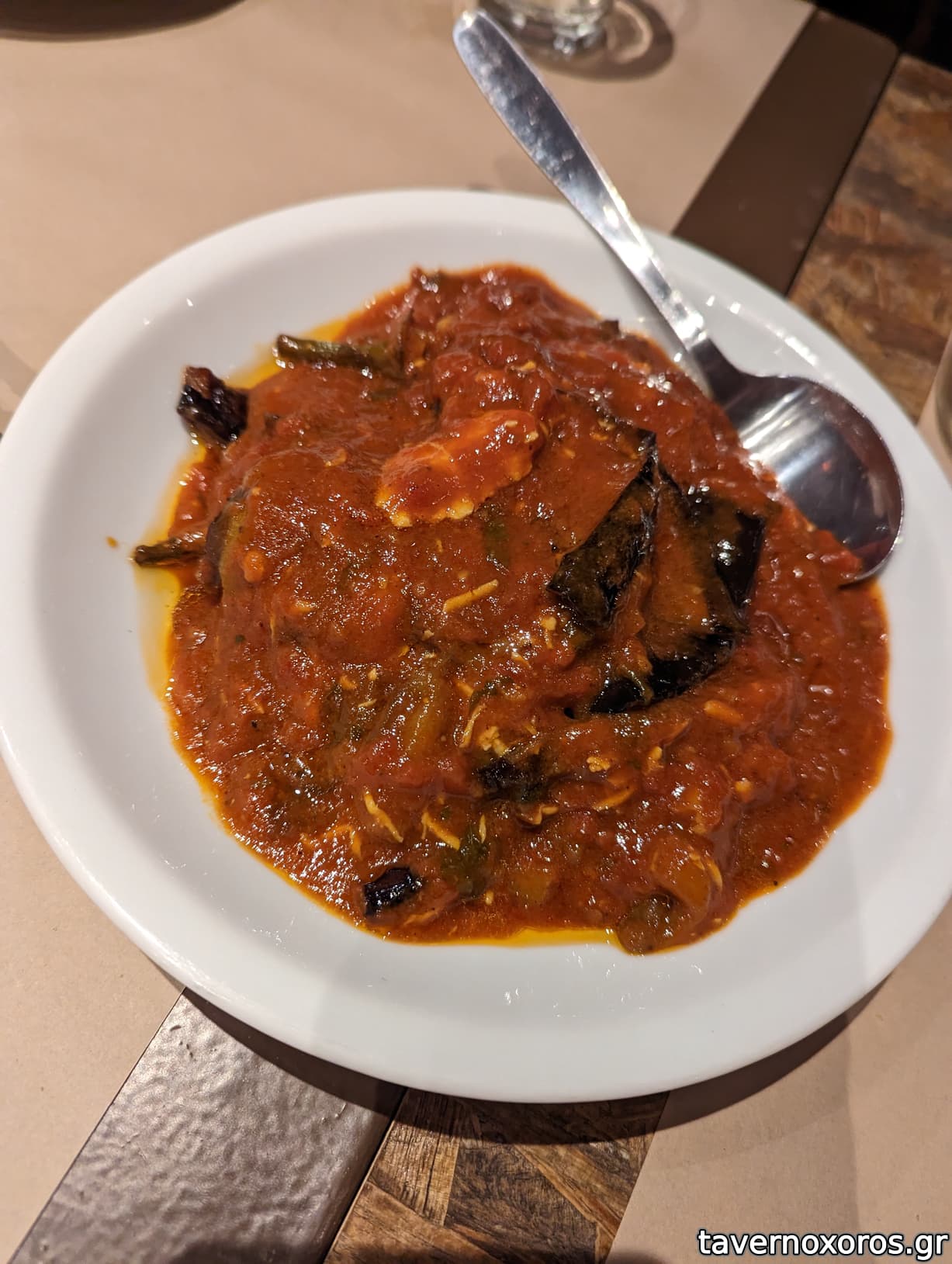 - Πιπεριές και μελιτζάνες τηγανητές με σάλτσα. Νόστιμο, αλλά ήρθε χλιαρό.