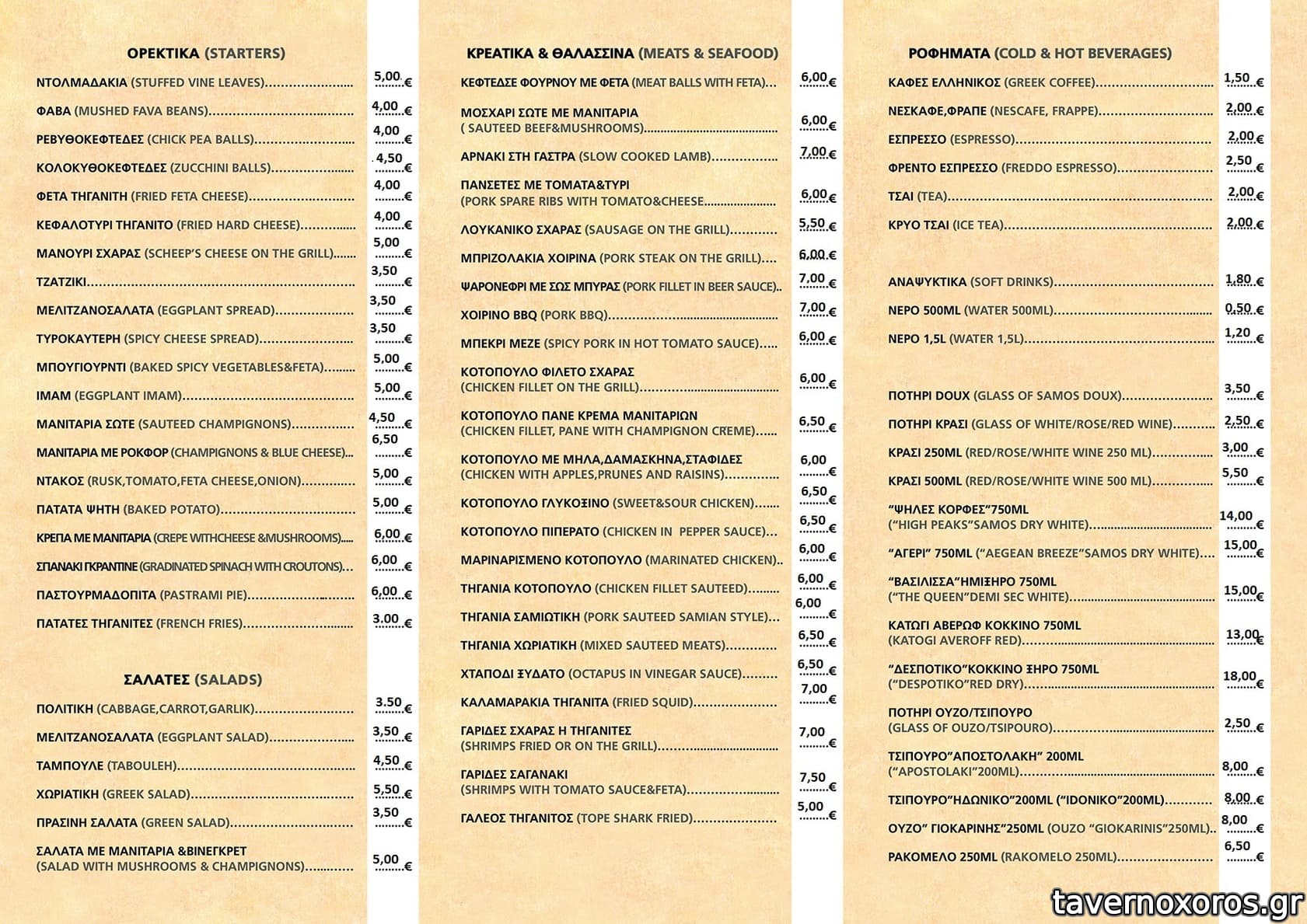 | Λέξεις κλειδιά | #πεζόδρομος, #εξωτερική θερμάστρα, #ντολμαδάκια, #φάβα, #ρεβυθοκεφτέδες, #κολοκυθοκεφτέδες, #μανιτάρια, #ροκφόρ, #ντάκος, #μελιτζάνες, #παστουρμαδόπιτα, #ταμπουλέ, #μπιφτεκάκια, #πανσέτα, #λουκάνικο, #χοιρινή, #αρνάκι γάστρα, #κοτόπουλο, #ψαρονέφρι, #μπεκρή μεζές, #τηγανιά, #χταπόδι, #γαρίδες, #θράψαλα, #γαλέος |