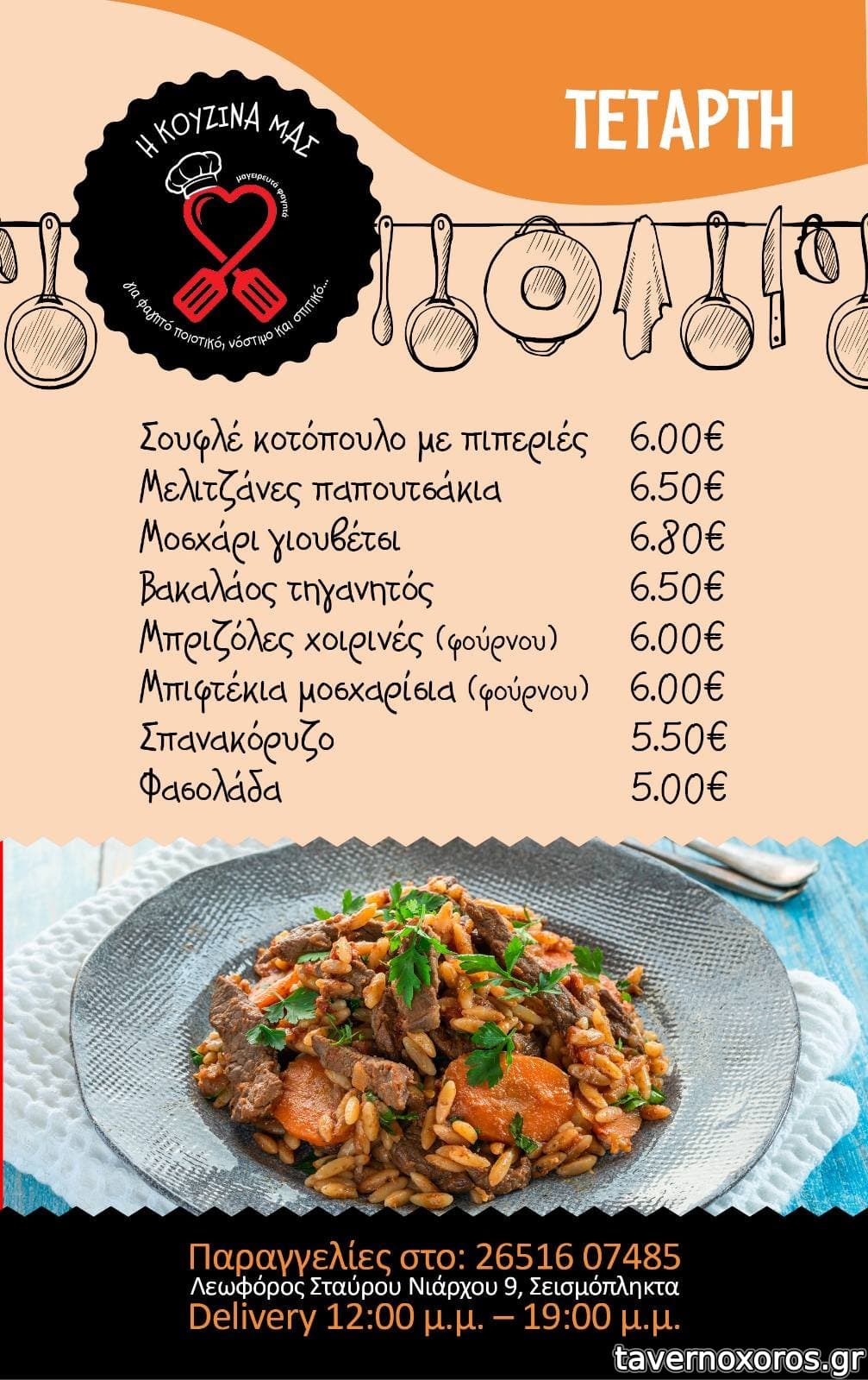 | Λέξεις κλειδιά | #παστίτσιο, #κοτόσουπα, #φασόλια γίγαντες, #κοτόπουλο, #γεμιστά, #κοκκινιστό, #μπάμιες, #μπιφτεκάκια, #μουσακάς, #κεφτεδάκια, #γιουβαρλάκια, #σνίτσελ, #γιουβέτσι, #σουφλέ, #παπουτσάκια, #φασολάδα, #μοσχάρι στιφάδο, #σολομός, #βραστό, #μπριάμ, #κοτόπιτα, #τυρόπιτα, #μακαρονάδες, #σαρδέλα, #ρεβύθια, #σουτζουκάκια σμυρνέικα, #χυλοπίτες, #αρνάκι στο φούρνο |