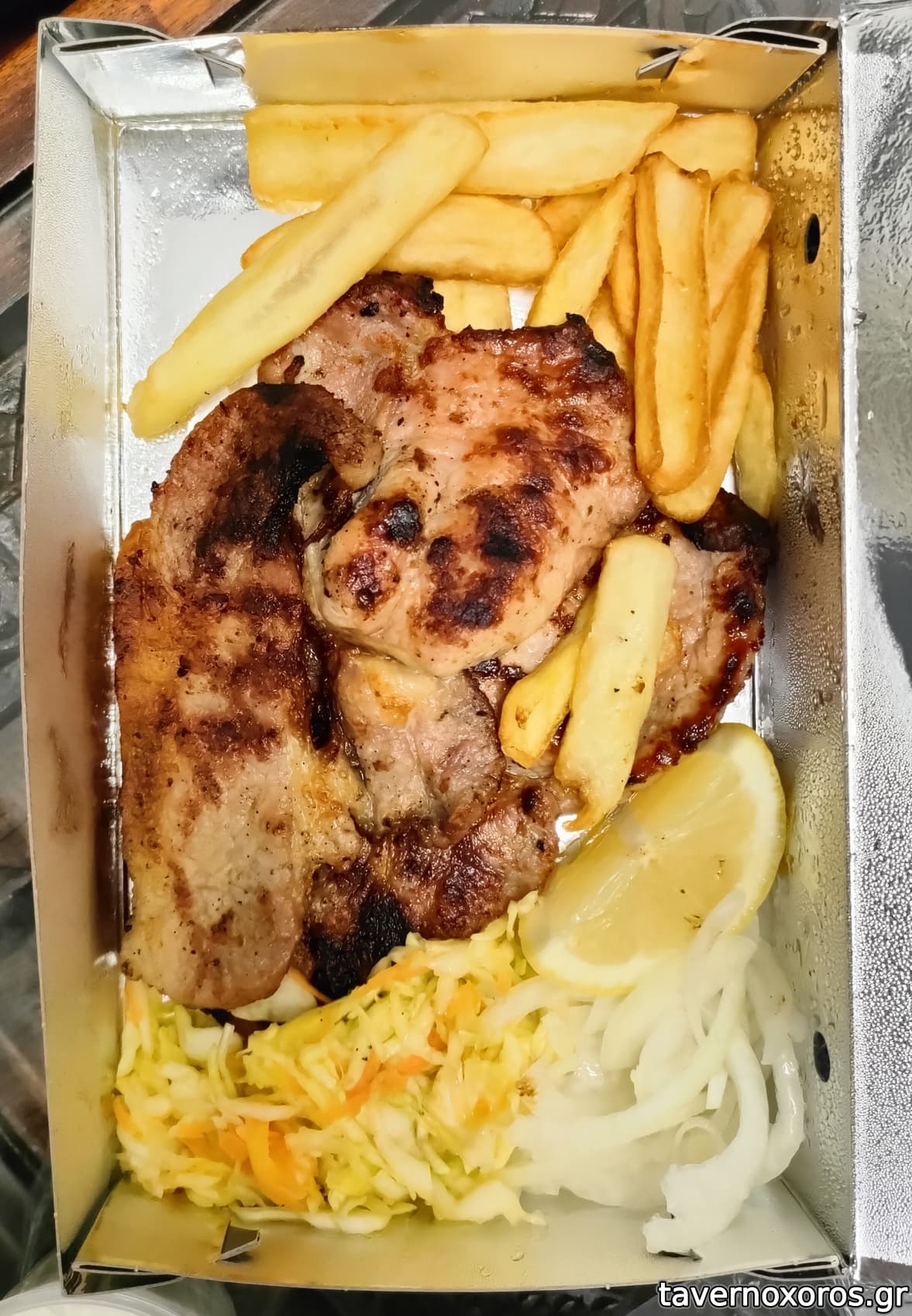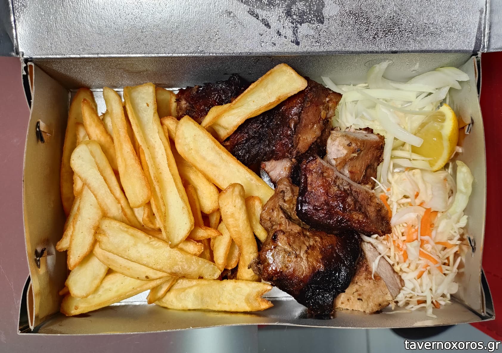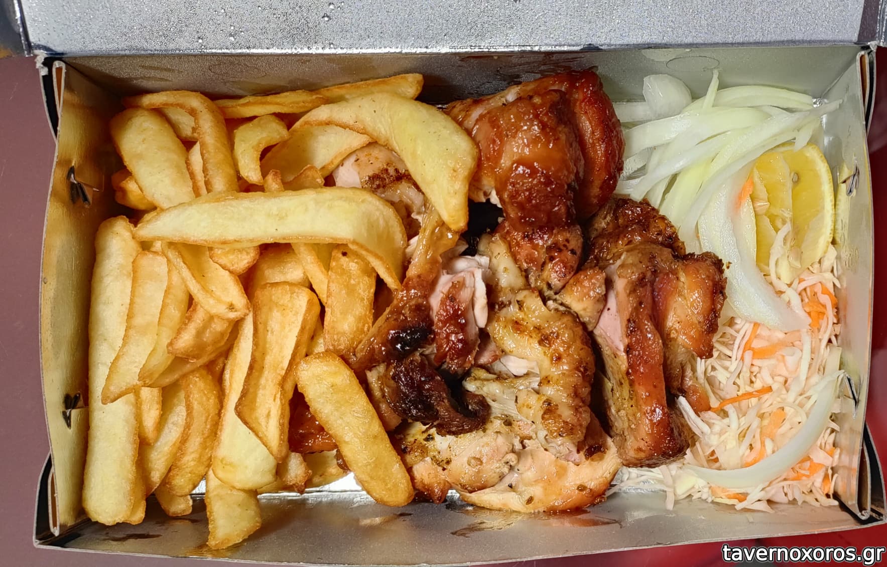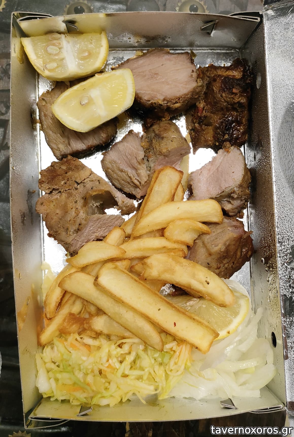 Δοκιμάσθηκε μερίδα κοντοσούβλι κοτόπουλου και χοιρινού.