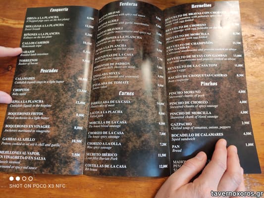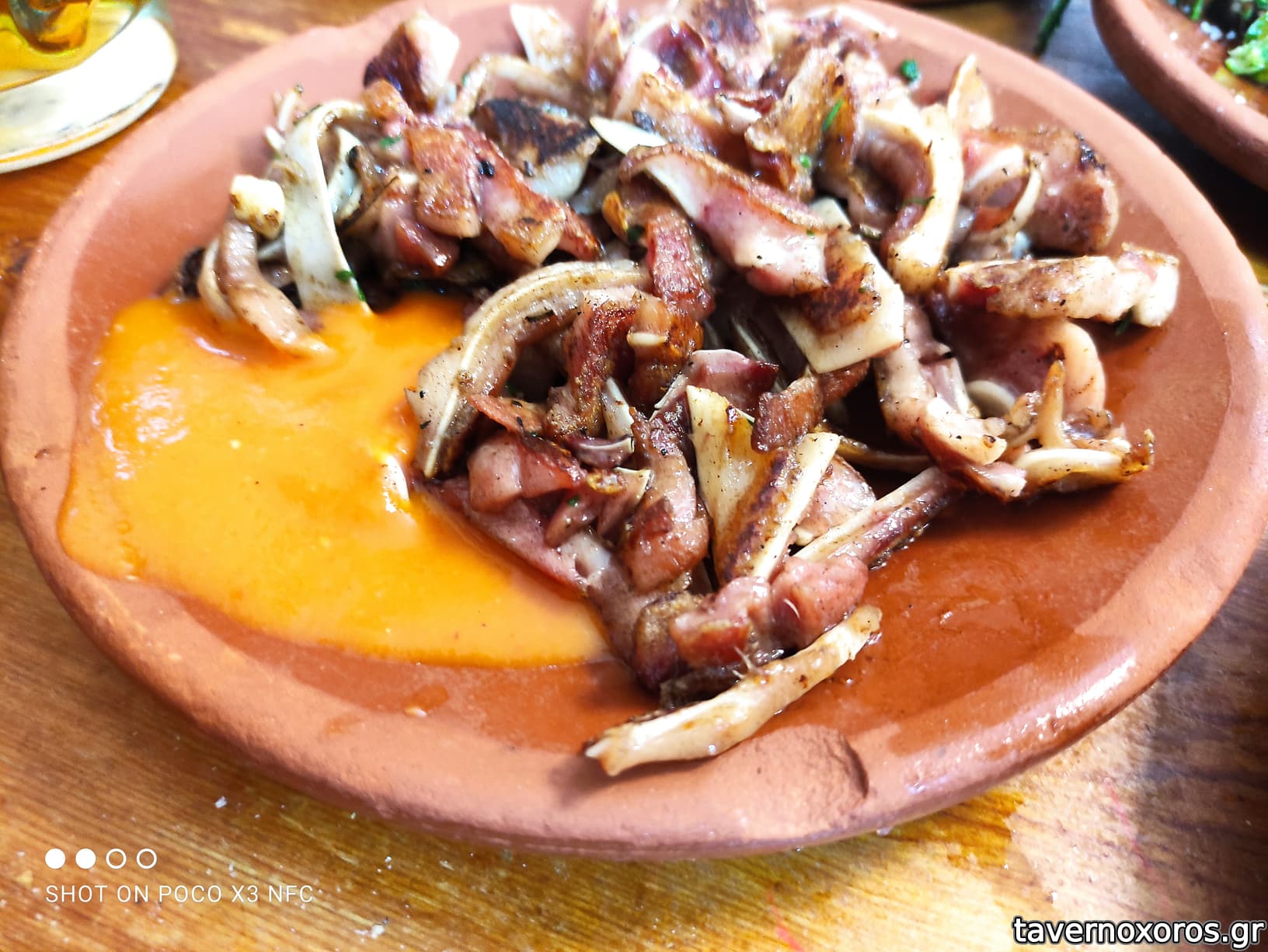 Τηγανητες πιπεριές πολύ καλές, πατάτας μπραβας πολύ καλές, τηγανητά αυτιά γουρουνιού πολύ καλά, τηγανητό χοιρινό καλό, αυγά με λουκάνικο καλό, νεφρά τηγανητά καλά,