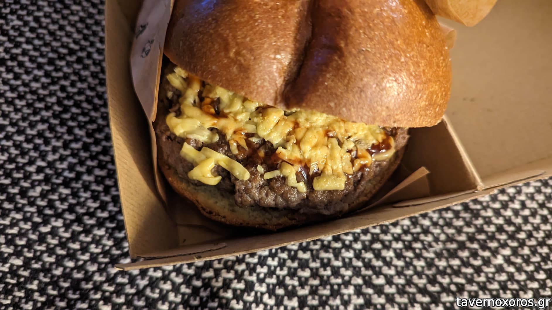 Τα παιδιά μέσα ήταν ευγενέστατα και μου εξήγησαν οτι είναι καινούριο το μαγαζί και προσπαθούν να το "στρώσουν", ποντάροντας στην ποιότητα και την εντοπιότητα των κρεάτων τους..Με ρώτησαν τι ψήσιμο θέλω στο μπιφτέκι, το ζύμωσε εκείνη τη στιγμή και το ήλεγχε με θερμόμετρο (!) όσο ψηνόταν..Το αποτέλεσμα ήταν ένα medium well, ακριβώς όπως το ήθελα, ζουμερό και με εξαιρετικά καραμελωμένα κρεμμύδια απ'τους ίδιους..Ήταν απ'τα καλύτερα που έχω φάει! Αυτό που θέλει λίγο βελτίωση είναι το brioche ψωμάκι, που ήταν προκατ και φαινόταν λίγο στη γεύση, όπως επίσης και οι πατάτες που ενώ ήταν καλές προκάτ, ήταν κάπως περίεργη η..αλατορίγανη με το burger! Τα ευχαριστήθηκα και το προτείνω, κυρίως για το εξαιρετικό κρέας.. Τιμή μου διαφεύγει δυστυχώς