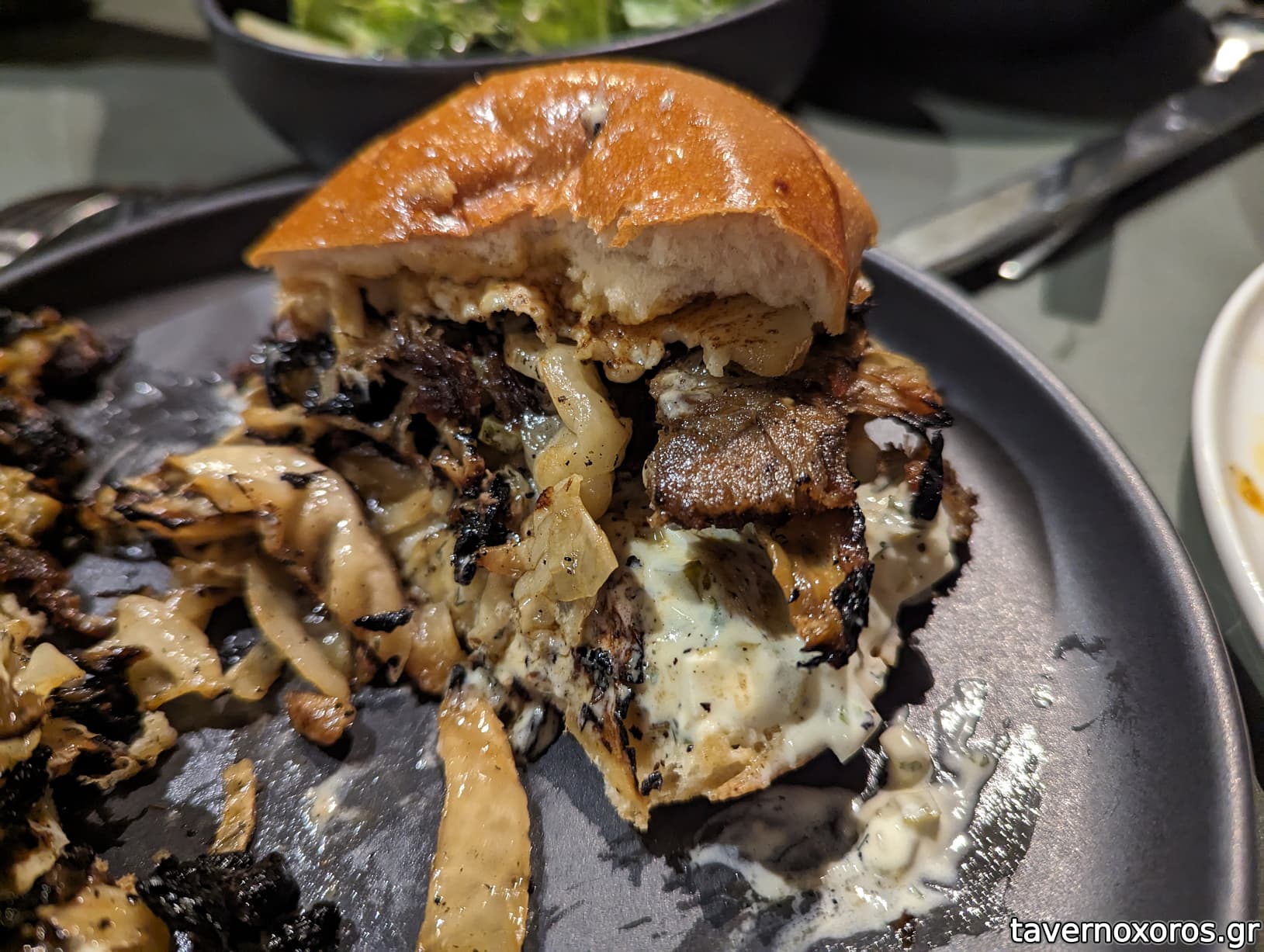 Smash κατσικομπέργκερ (15€, πολύ καλό)