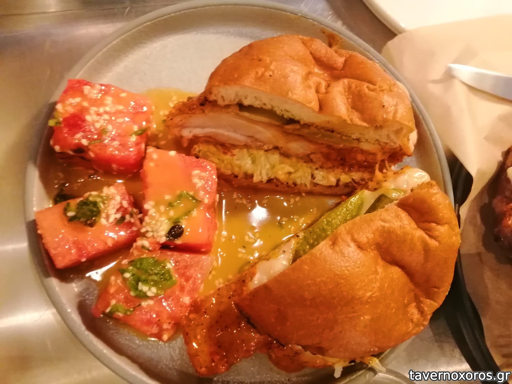 V-tec μπέργκερ με καρπούζι με wakame (15€, καταπληκτικό)