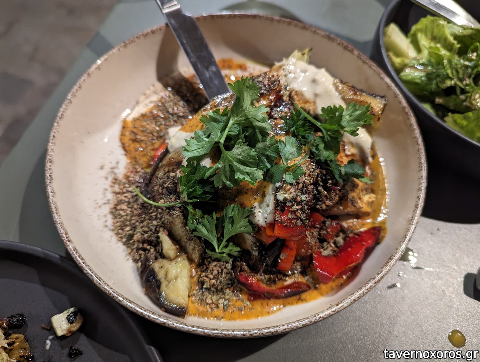 "Καλαμάρι στο κάρβουνο, εζμέ σαλάτα πράσινης τομάτας ζύμωσης, ταχίνι" (αδιάφορο)