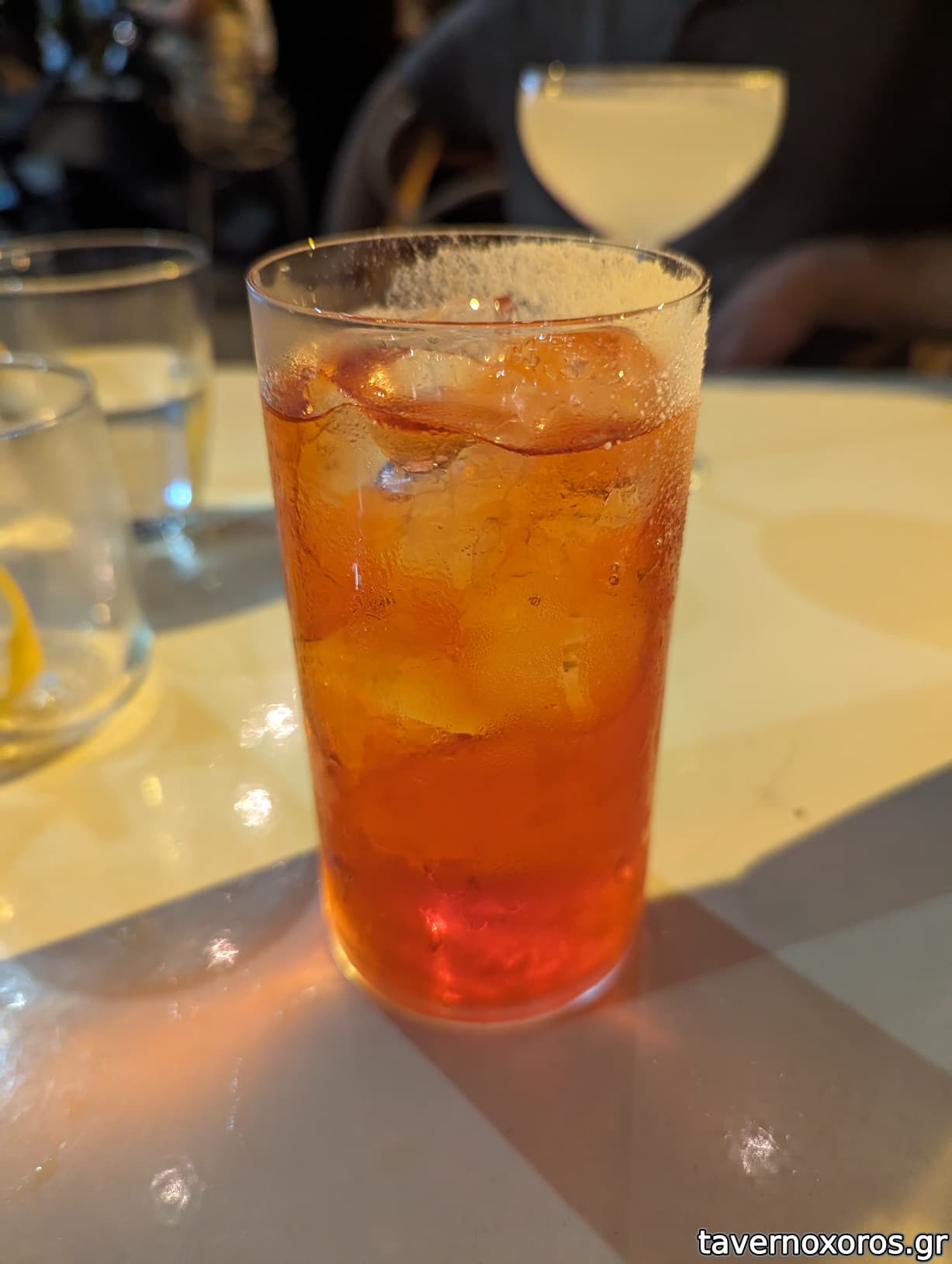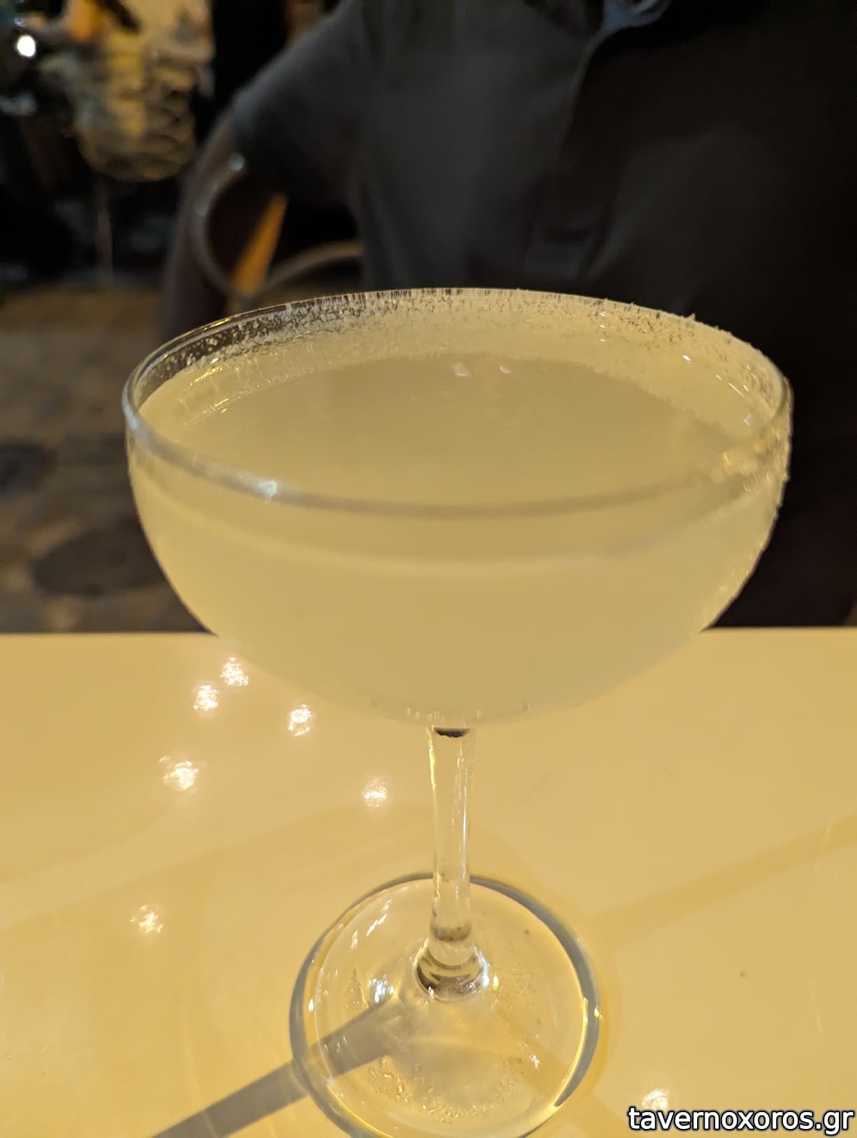 Δύο κοκτέιλ από τα δικά τους. Άνευρα, αλλά δεν θα σταθώ εκεί. Θα σταθώ στο ότι ήταν των 12€, σε νεροπότηρα (πασπαλισμένα λοξά με αλάτι, ουάου...), και δεν συνοδεύτηκαν ποτέ ούτε με κάτι σε πατατάκι-ξηροκάρπι, αλλά ούτε καν με νερό! Τρεις παρέες στο μαγαζί εν τω μεταξύ. Από τουπέ και κόρδωμα και ινσταστόρι πρώτοι Σε άλλα μαγαζιά με περισσότερο κόσμο και καλύτερη τοποθεσία πίνεις με 10-12 € κοκτειλάρες σε μεγάλο ποτήρι και τσιμπάς και κάτι, όχι για την πείνα αλλά για την εναλλαγή των γεύσεων έστω. Και μέσα στο κατακαλόκαιρο δώστε ένα ποτήρι νερό βρύσης με πάγο ρε παιδιά. Κατά τ'
