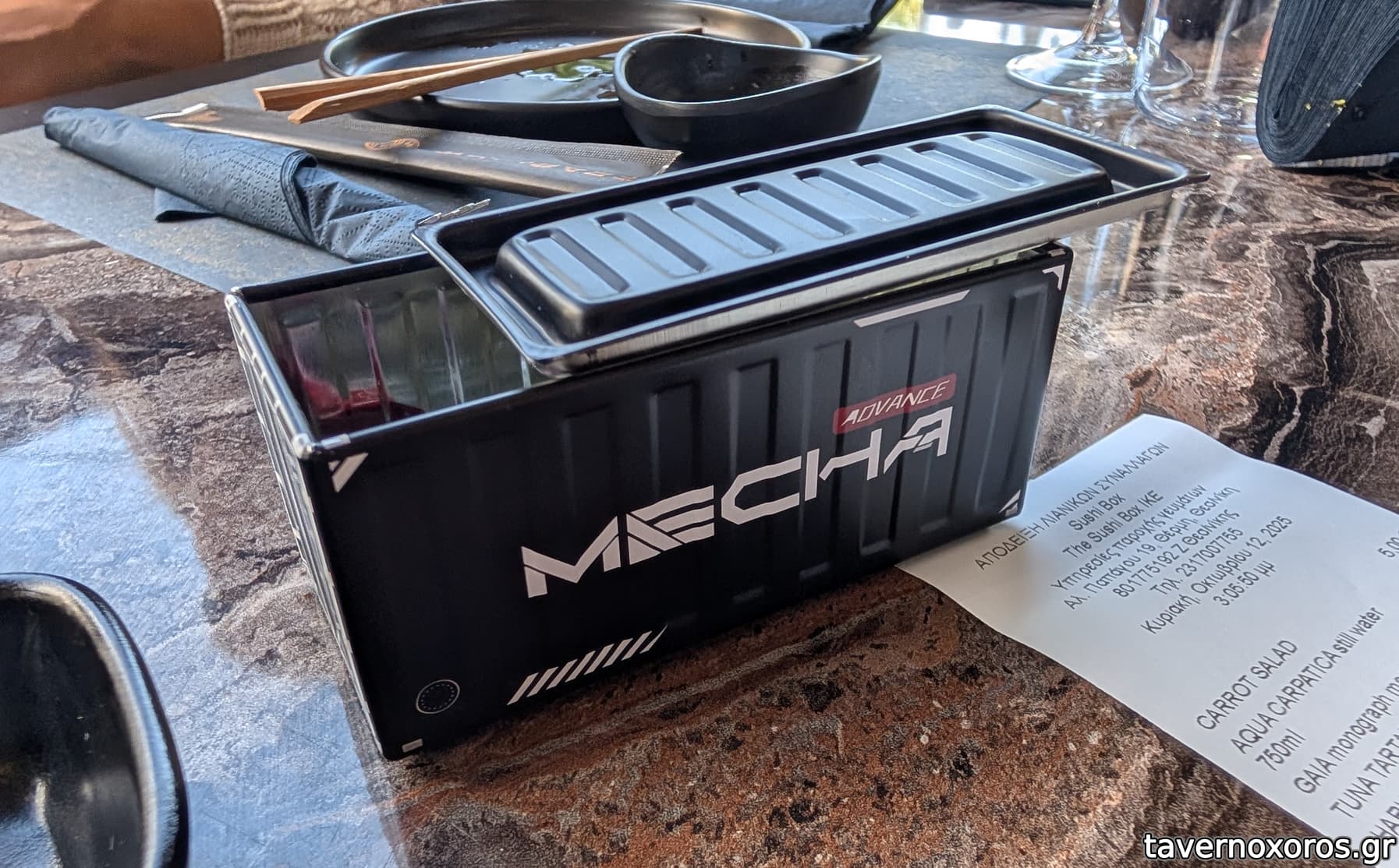 Ο χώρος μικρός και μίνιμαλ. Το ενδιαφέρον είναι ότι οι ετοιμαστές του sushi βρίσκονται πίσω από μια μεγάλη γυάλινη βιτρίνα μπροστά σου, σα να είναι σε κάποιο εργαστήριο, αλλά δε μπορείς να τους μιλήσεις ή να τους ακούσεις (φυσικά). Λίγο γυάλα η φάση, σοβαροί αυτοί..