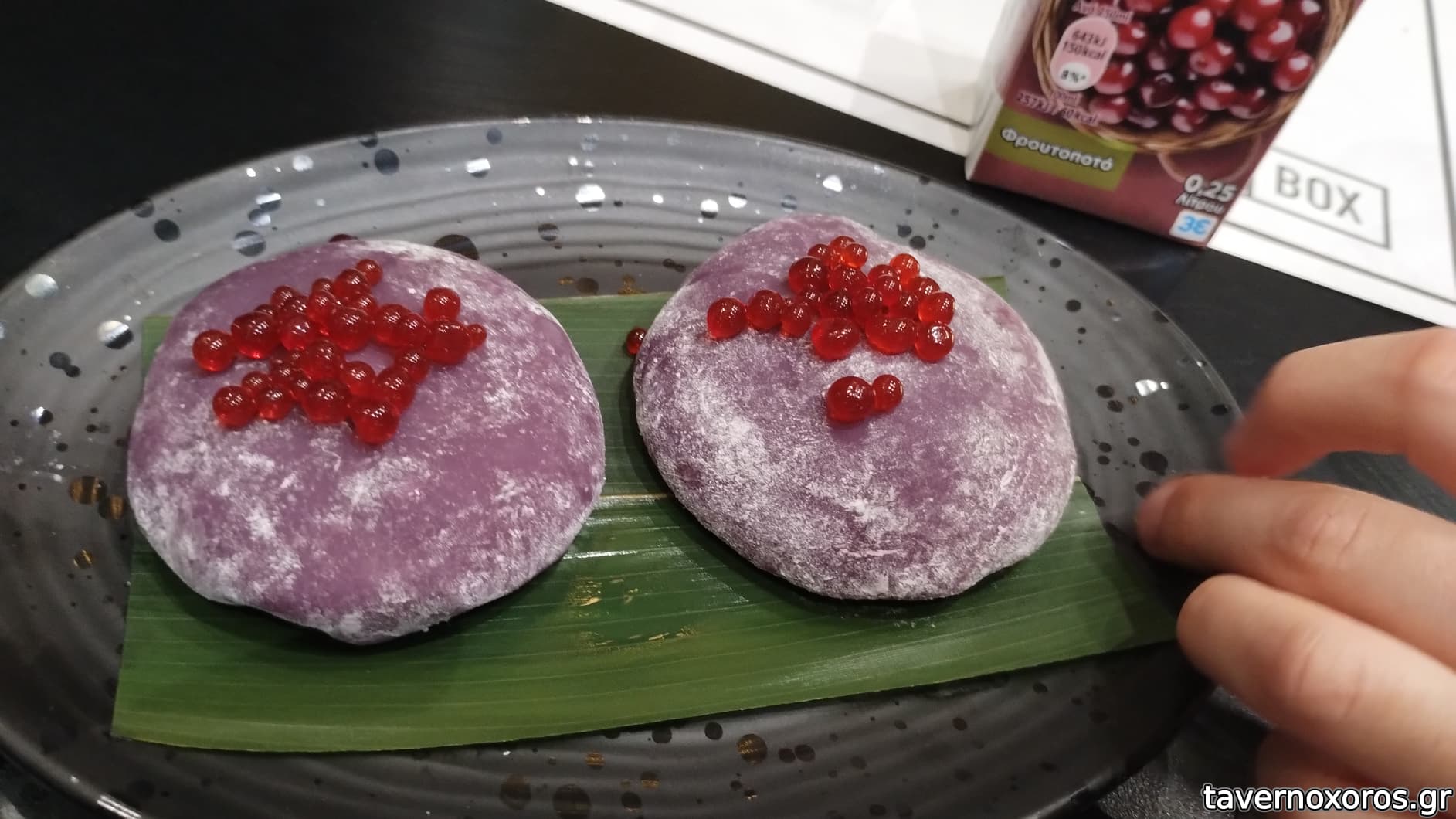 Red berry mochi (πάνε με το τεμάχιο. Οκ, δοκίμασα και μού άρεσαν, αλλά δεν τα ζήτησα εγώ!)