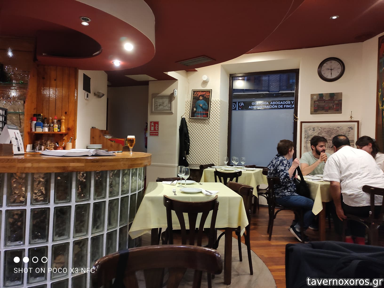 Βράδυ καθημερινής, τραπέζι για τέσσερις. Ευχάριστη βαρελίσια lager. 5 μπύρες, 1 κρασί, 110€.