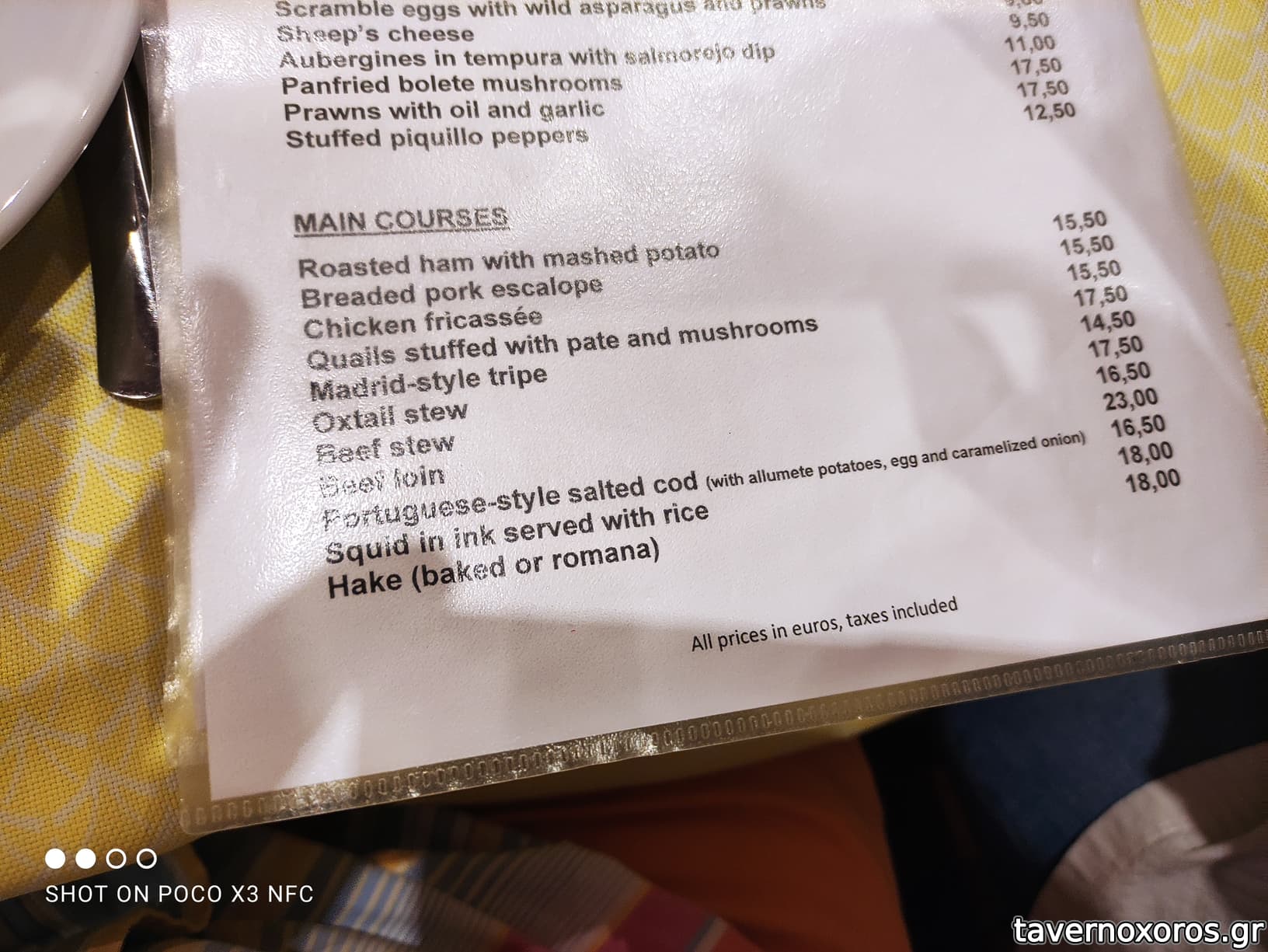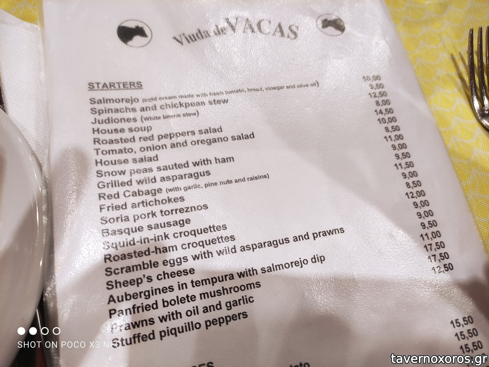Ελιές πράσινες ορεκτικό του καταστήματος κατά την παραγγελία. Αδιάφορο λευκό ψωμί (κλασσικό για tapas). Πεντανόστιμο "Salmorejo", ορεκτικό έκπληξη. Νόστιμα ψητά σπαράγγια. Σκορδάτο και γευστικότατο, ζεστό, "Lombarda a la catalana" κόκκινο λάχανο με κουκουνάρι και σταφίδες. Πολύ ενδιαφέρουσα δοκιμή με τις κροκέτες καλαμαριού με το μελάνι. Ουρά ταύρου, αξιόλογη, μαλακό και λιπαρό πιάτο με ωραία σάλτσα. Σχετικά αδιάφορο κοτόπουλο φρικασέ "Gallina en pepitoria". Τίμιο και νόστιμο κομμάτι Flan / κρέμα καραμελέ.