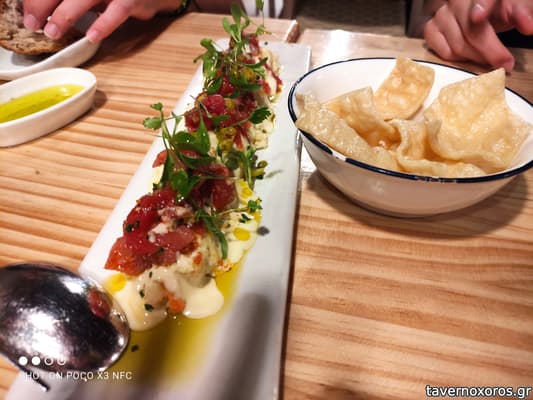 Σέρβις ευγενικό και αποτελεσματικό. Ψωμι για 4 συνοδεία πολύ καλού ελαιολάδου από Ανδαλουσία. Καλωσορισμα καλό. Κοκκινος τόνος με πατατοσαλάτα καλό. Πανσετα με τραγανή πέτσα καλό. Κεφτεδακια καλά, πάπια με ρύζι καλό, πατάτες ιμπορτανθια καλές, σουβλάκι χοιρινό καλό, 3 μπύρες, 2 νερά =136 ευρώ. Ενω όλα τα φαγητά ήταν καλά δεν μου έκανε κάποιο ιδιαίτερη εντύπωση. Θα έψαχνα κάτι άλλο σε αυτό το στυλ την επόμενη φορά.