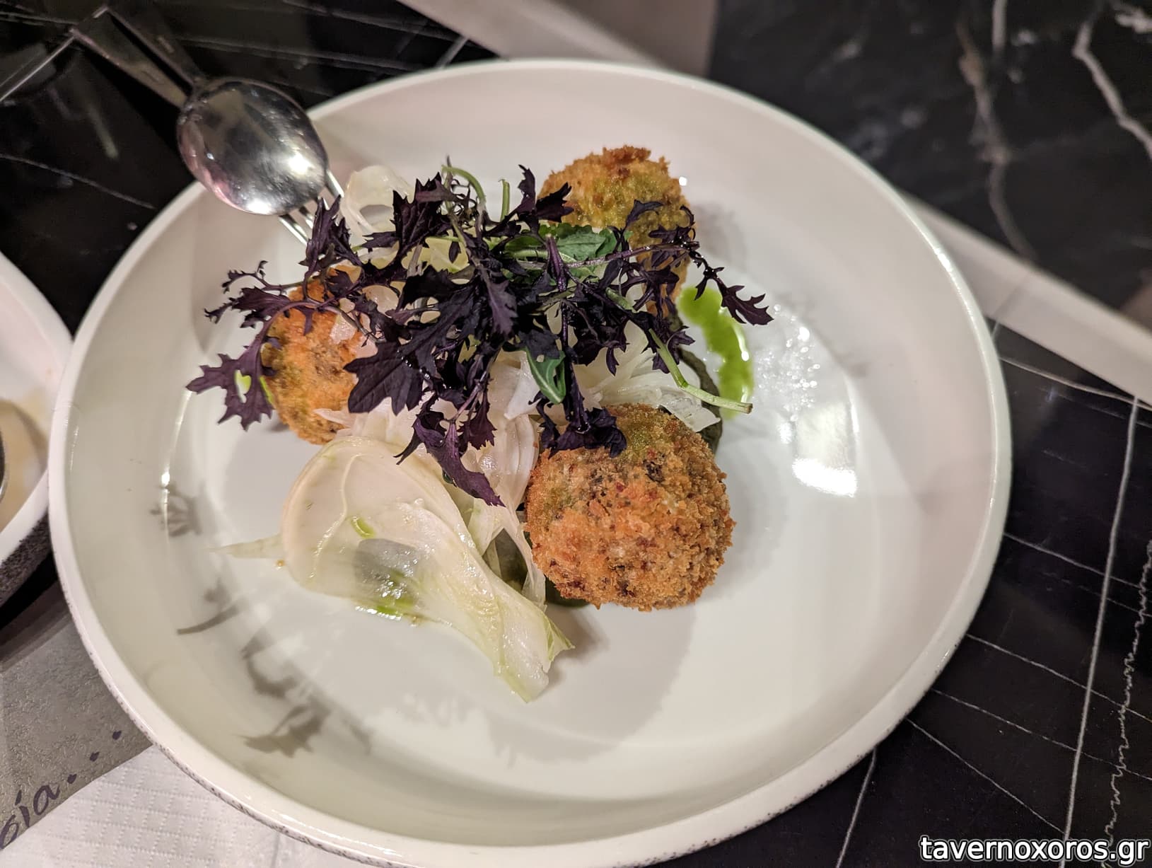 "Arancini, συκωτάκια, αμπελόφυλλα, φινόκιο" (ενδιαφέρον, καλό)