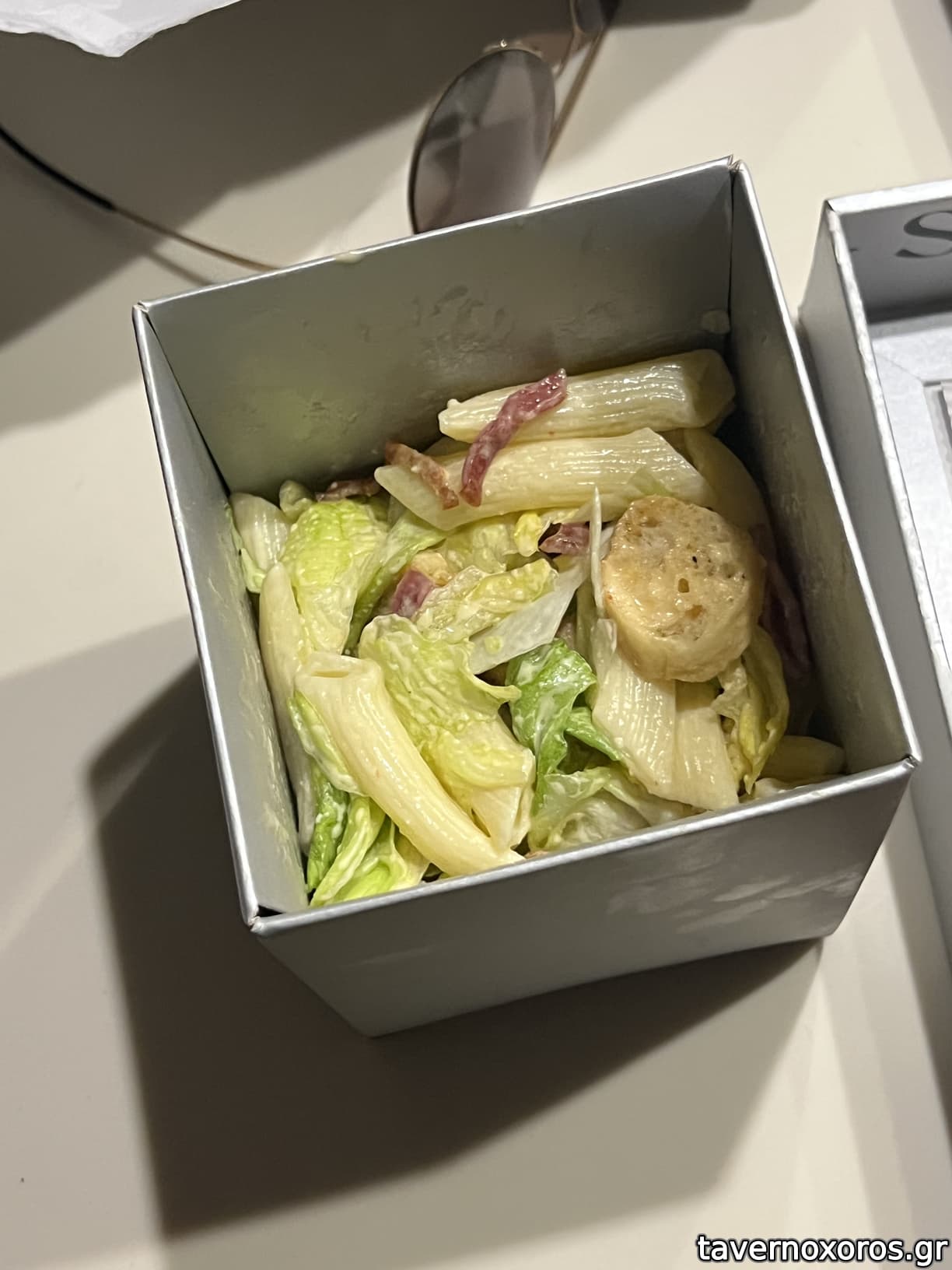 Πήρα και μια σαλάτα με μακαρόνια και iceberg η οποία ήταν απαράδεκτη. Δεν την εφαγα καν. Κρίμα πραγματικά! Δε ξέρω πόσο δύσκολο είναι να κάνει κανείς μια σαλάτα που να τρώγεται έστω. 3/10